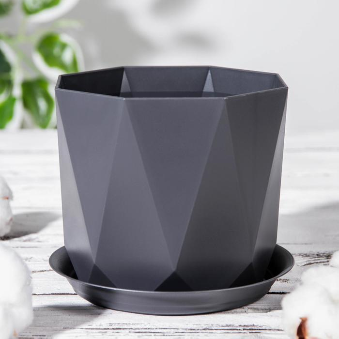 Кашпо, серый х 13 см, 1 л, 1 шт