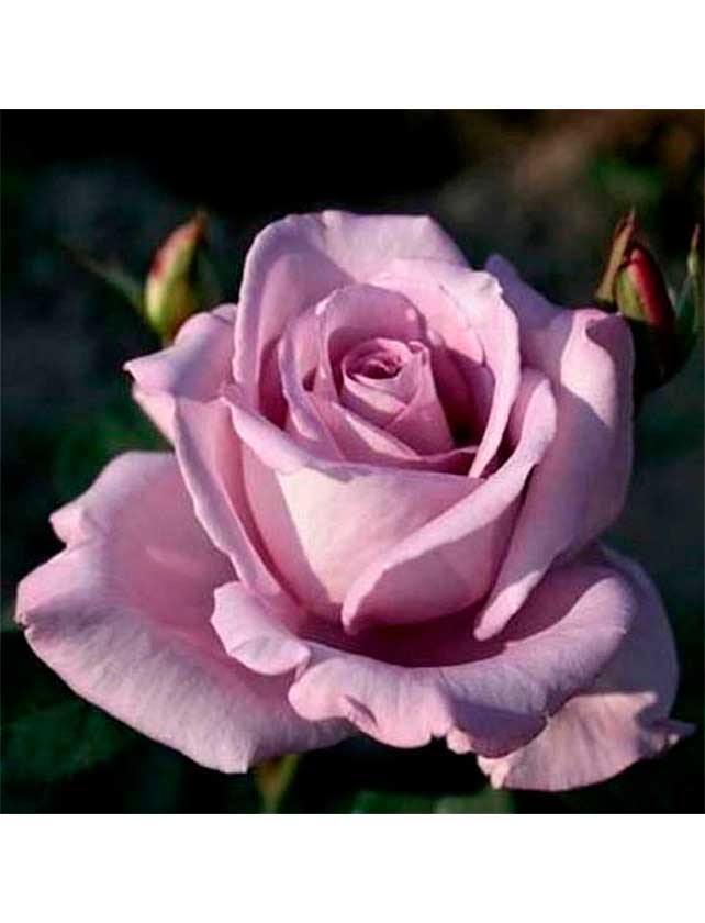 Прямостоячий сильнорослый куст достигает 75 см в высоту. Цветки крупные, серебристо-сиреневые