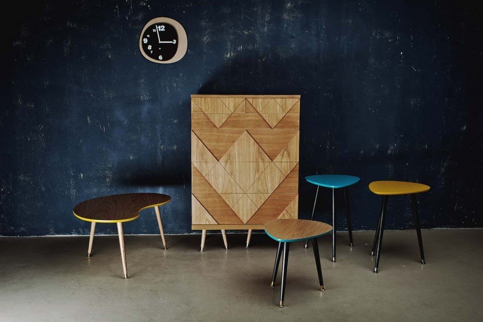 • Цвет Цвет морской волны, Светлый шпон, 43х58х50, Столешница – МДФ, лакированный дубовый шпон, краска; ножки – массив бука, лак., 0.03
