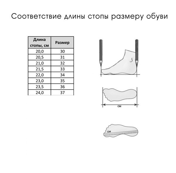 • Длина стопы, см 23.5