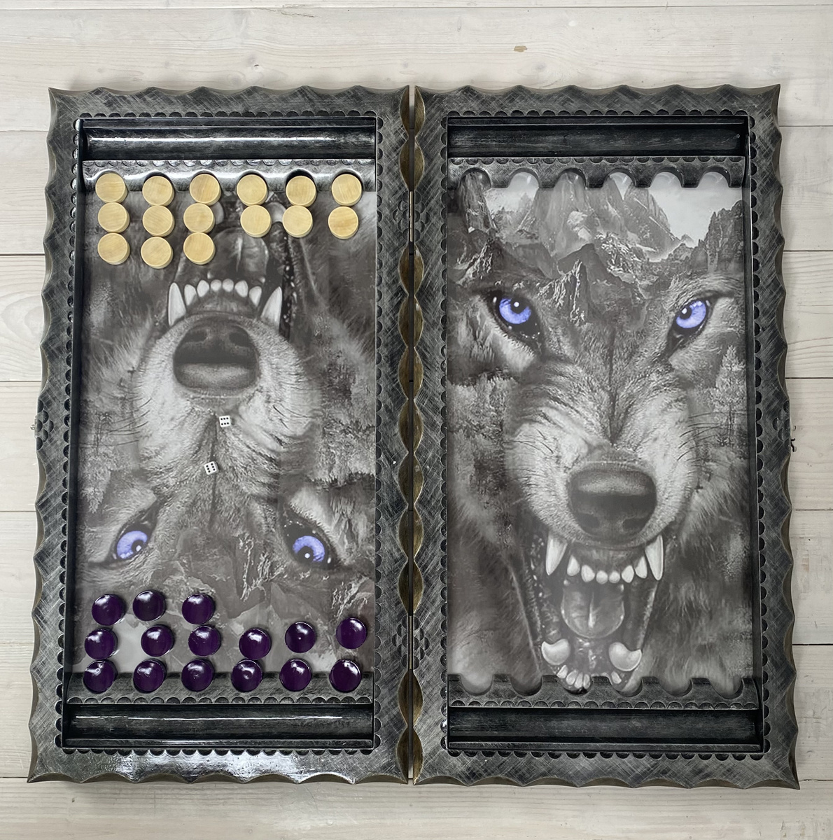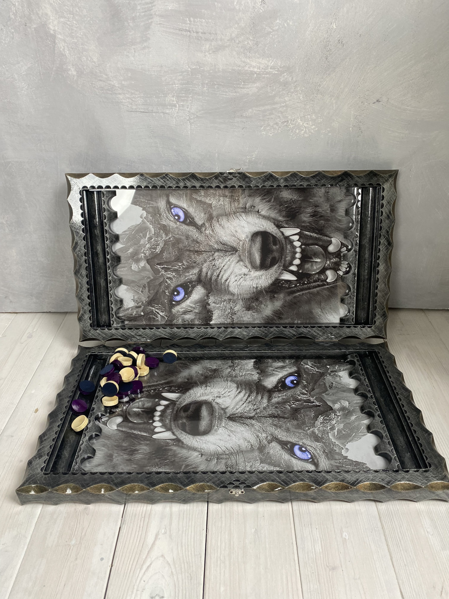 Нарды стеклянные ручной работы "Волки"