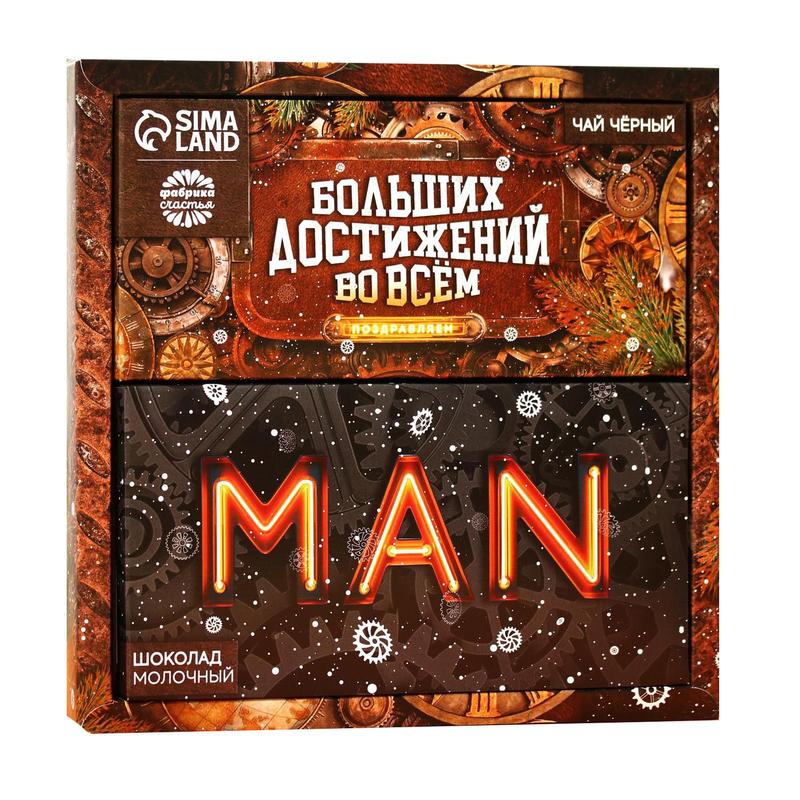 Подарочный набор Фабрика счастья (чай черный листовой, шоколад) 134 г