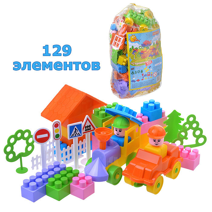 Полесье Конструктор пластиковый для детей "Строитель", 129 элементов УТМ01094586