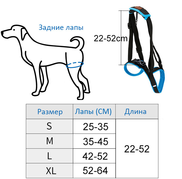 Ходунки, поддержка задних лап пожилых и травмированных собак. Поддерживающая шлейка, размер S.