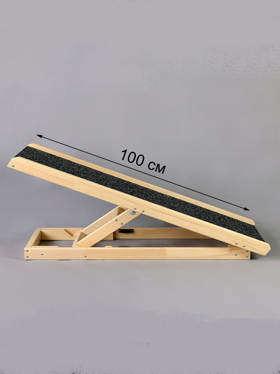 Пандус для собак прикроватный цвета сосна с черно-серым противоскользящим покрытием