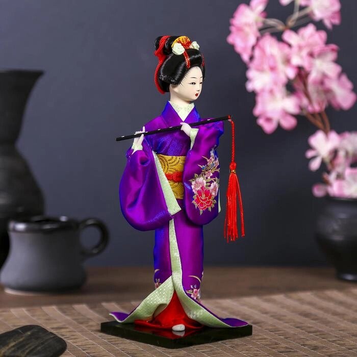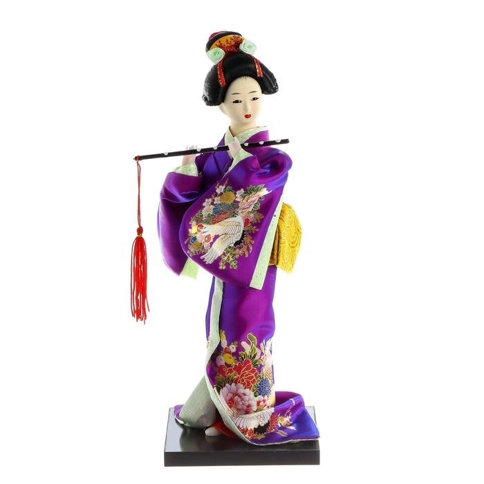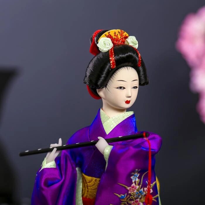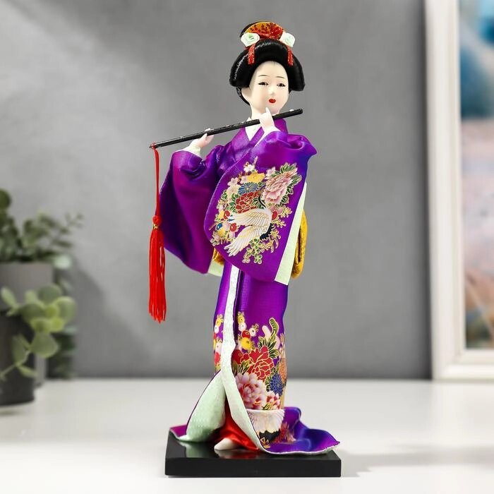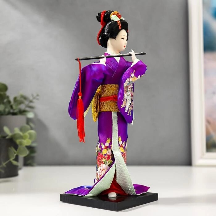 Кукла коллекционная 'Японка в фиолетовом кимоно с флейтой' 25х9,5х9,5 см