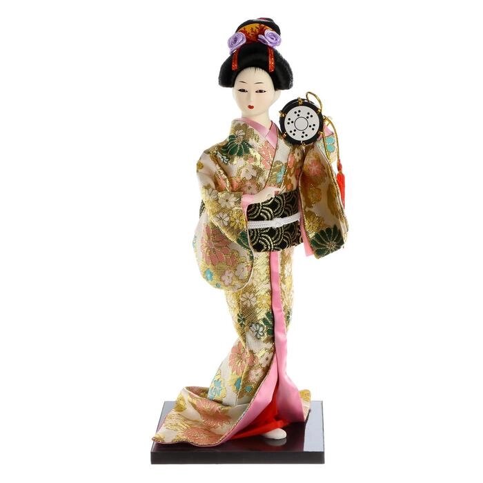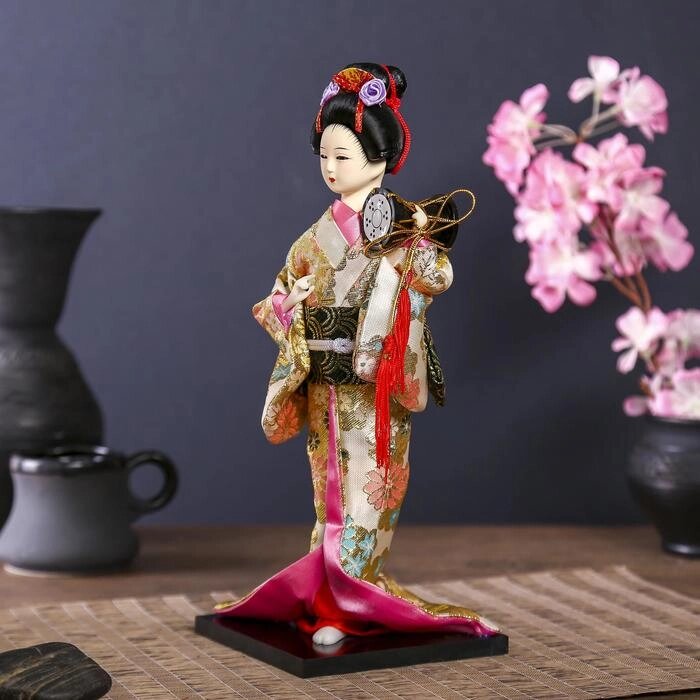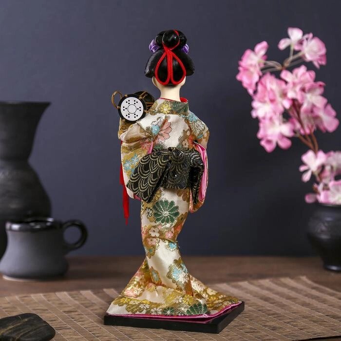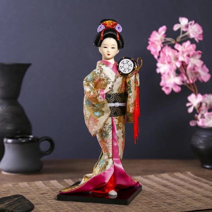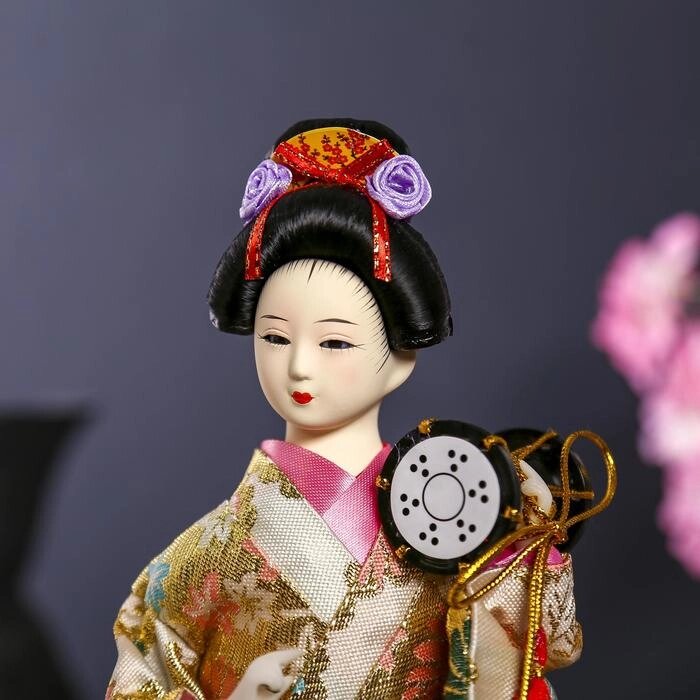 Кукла коллекционная "Гейша в шелковом кимоно с барабаном" 22,5 см