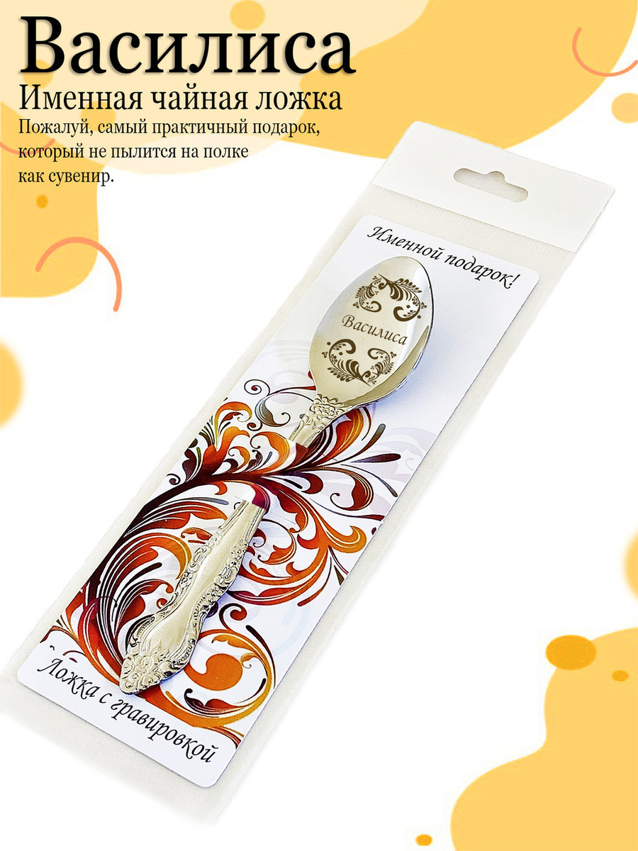 Именная чайная ложка с именем "Василиса" в подарочной упаковке