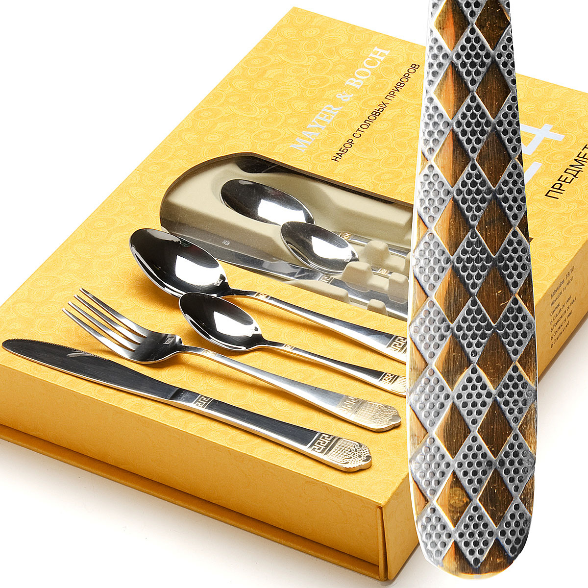 - Комплектация 6 столовых ложек, 6 вилок, 6 ножей, 6 чайных ложек