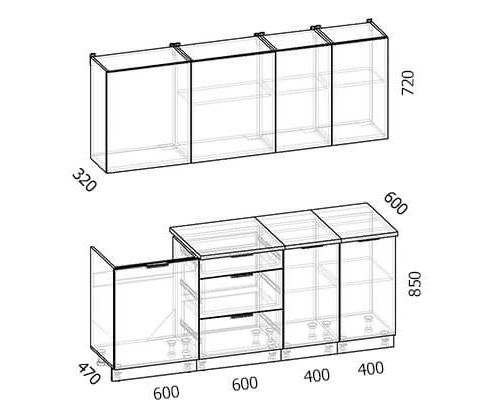 • Столешница отдельна на каждый шкаф (можно сплошную)