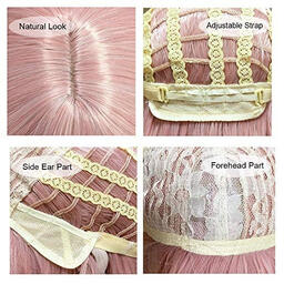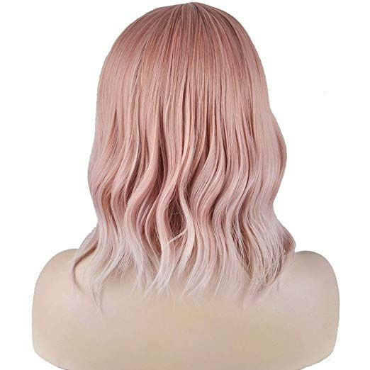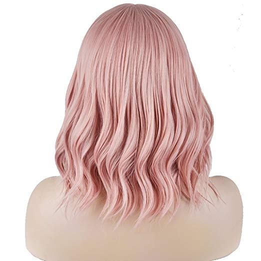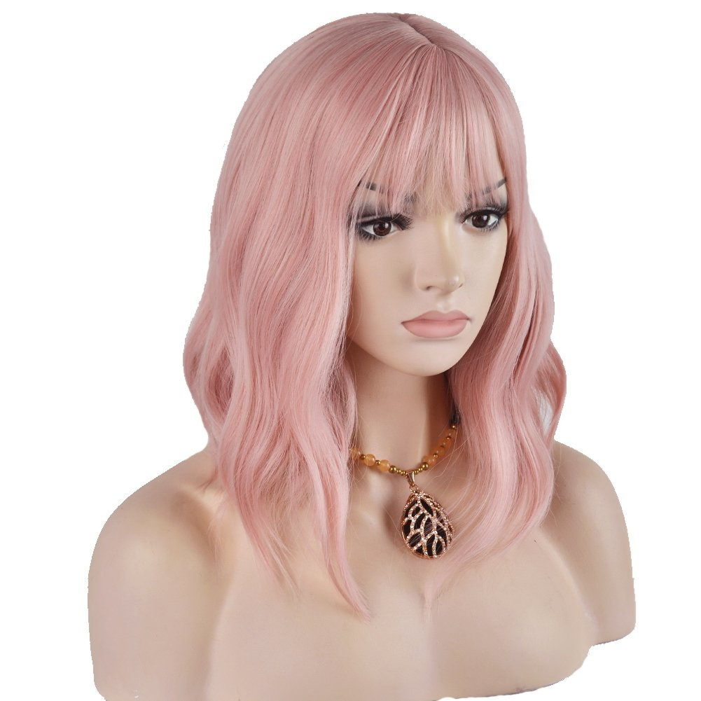 Короткие вьющиеся синтетические парики на шнурке с челкой Розовые парики из волос боб для женщин и девочек, связанные вручную, термостойкие, 14 дюймов, парики, колпачок в комплекте, костюмы на Хэллоуин, косплей