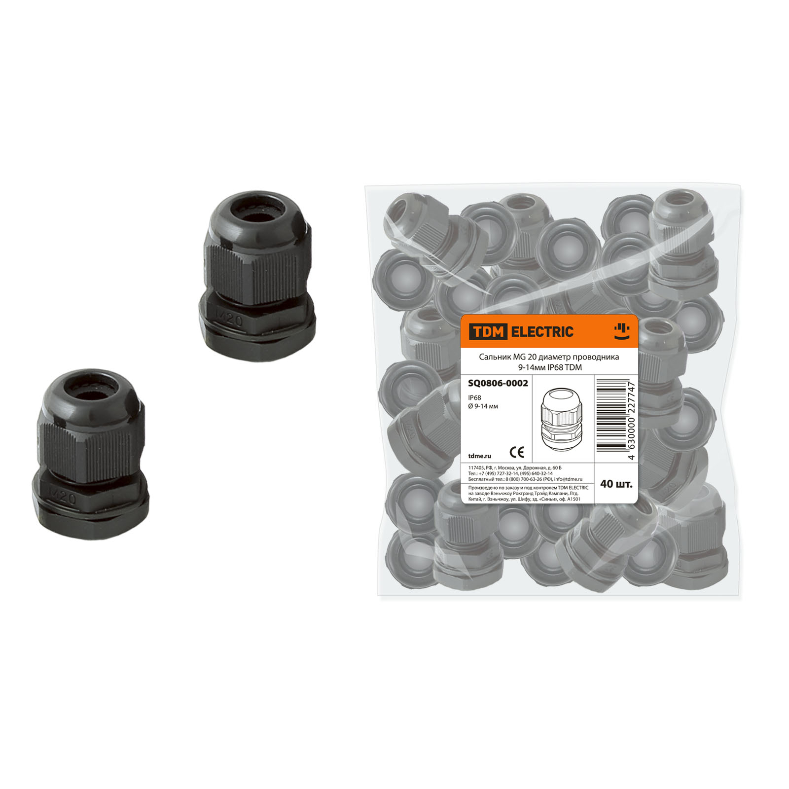 - Номинальный размер резьбы метрической/PG 20