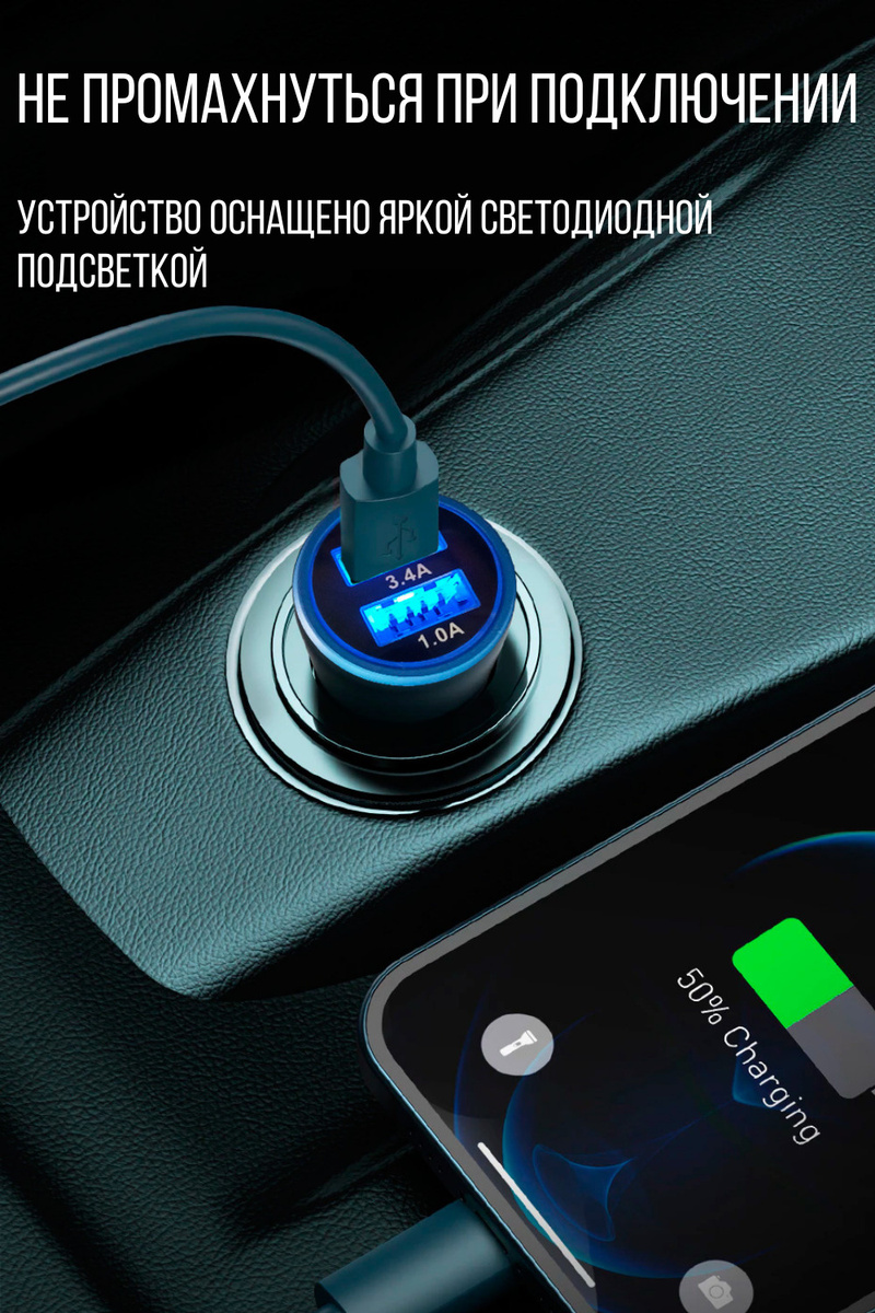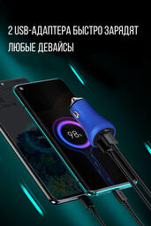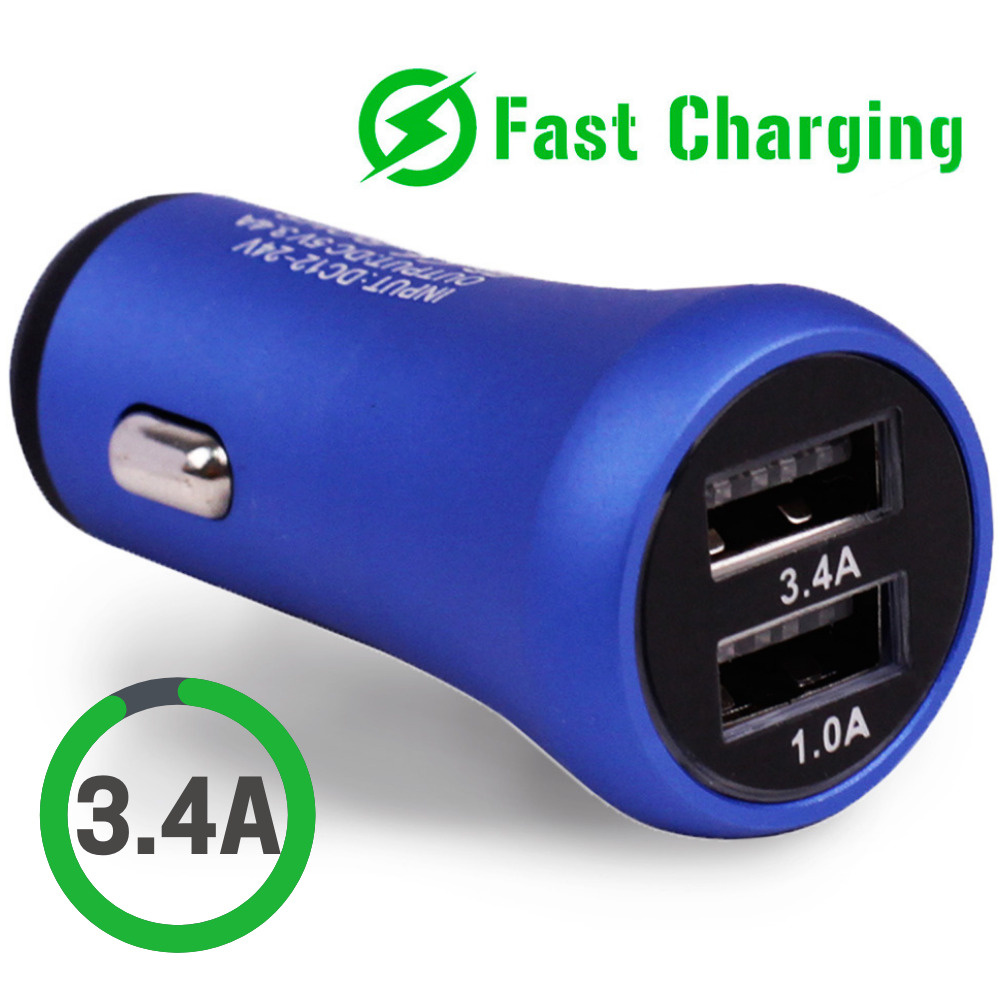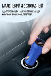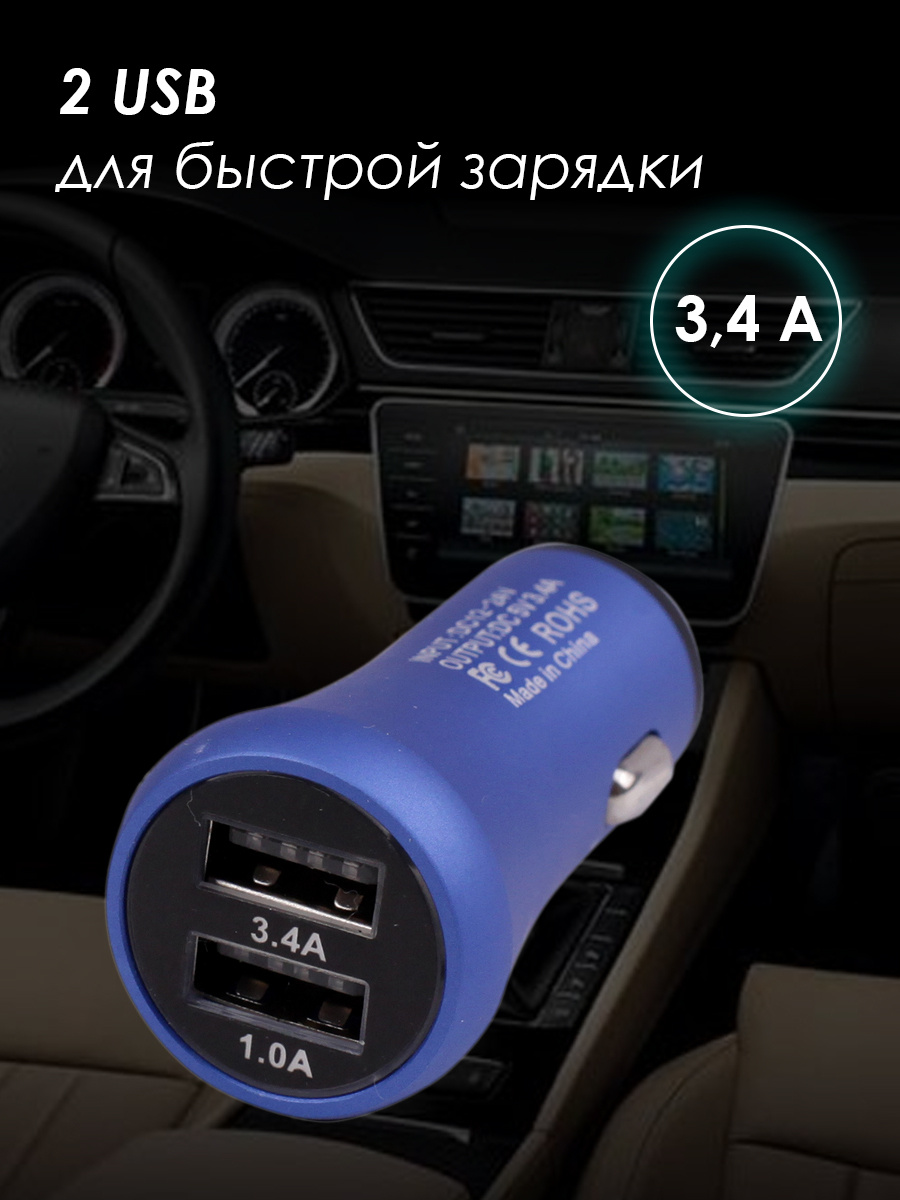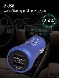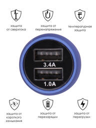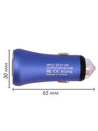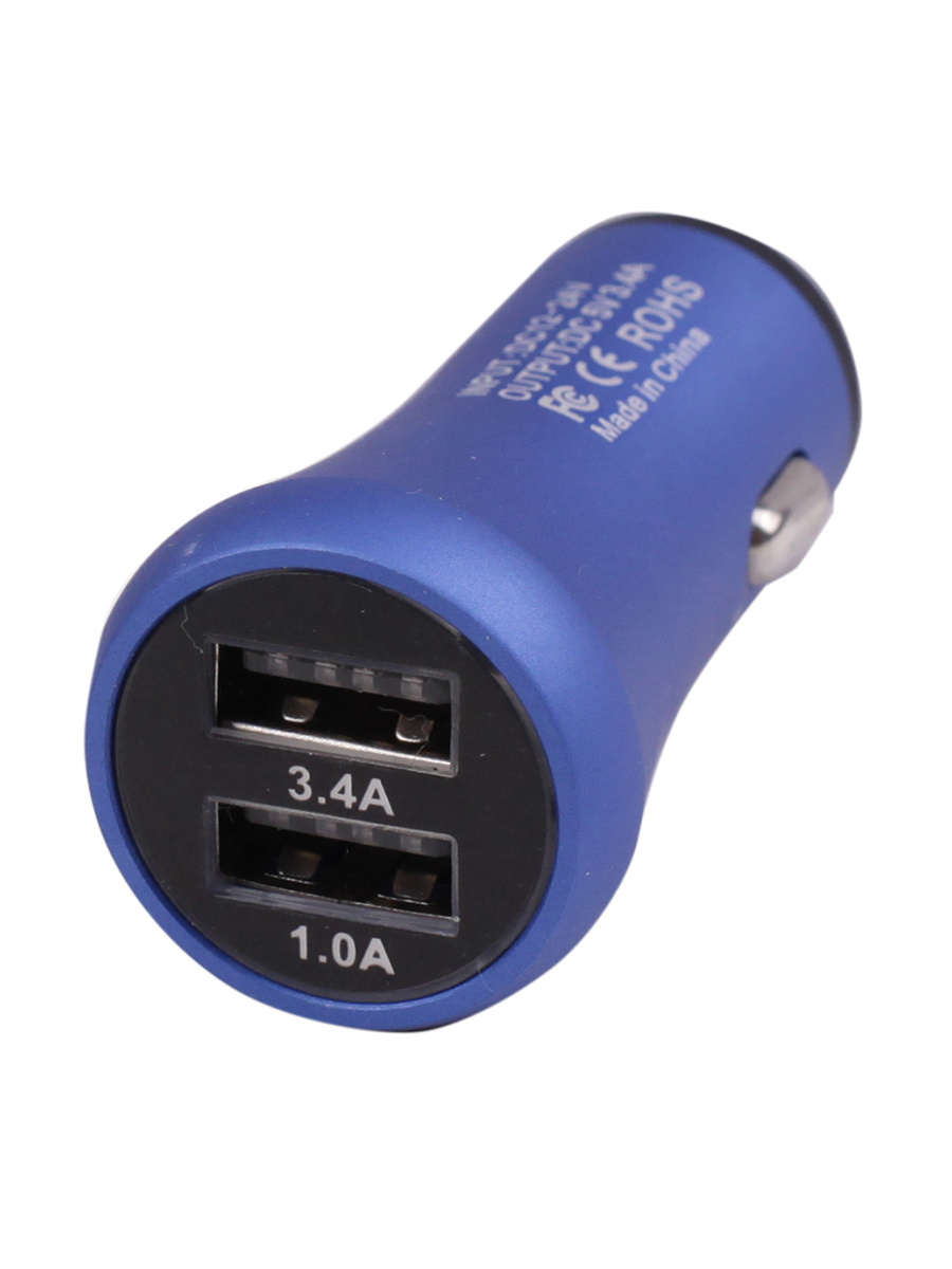 Автомобильное зарядное устройство USB в прикуриватель 3,4A Takara PG-258, 2*USB (металлический корпус) синий