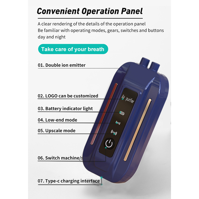 Очиститель воздуха Портативный с отрицательными ионами, мини висящее ожерелье синего цвета, синий