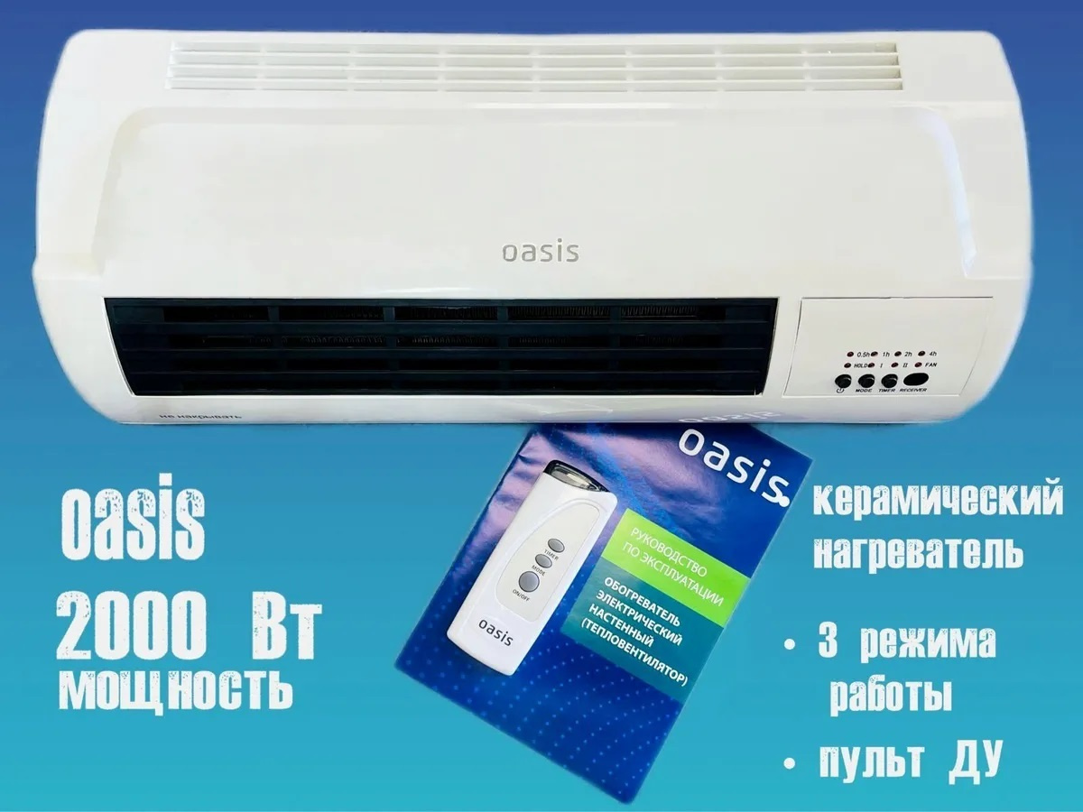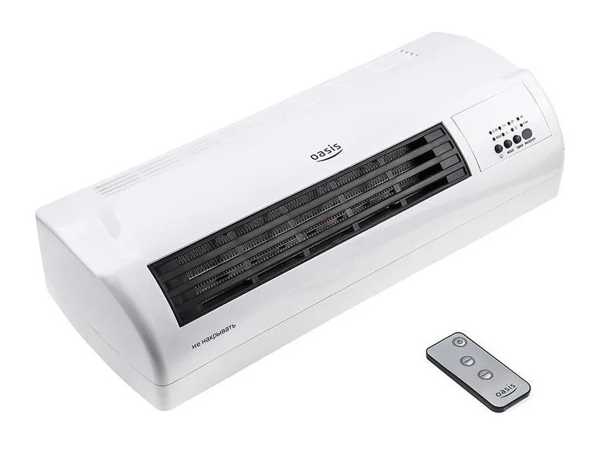 Тепловентилятор настенный Oasis NTB-20, керамический, 2000 Вт, пульт, белый
