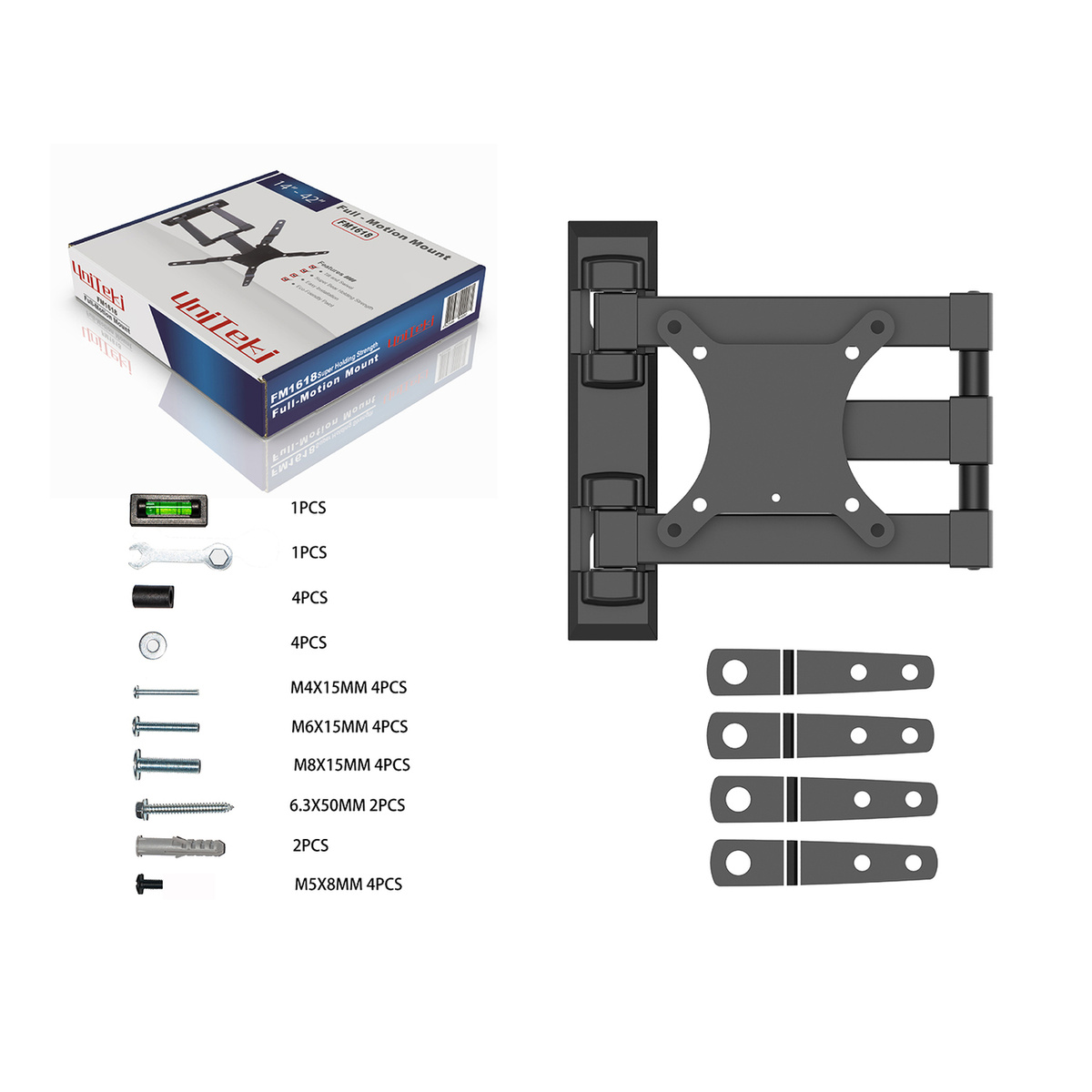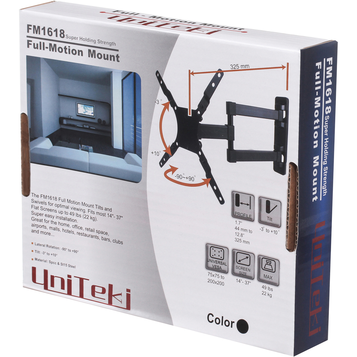 Кронштейн на стену UniTeki FM1618 черный наклонно поворотный быстросъемный для телевизора или монитора диагональ 14 до 37 дюймов
