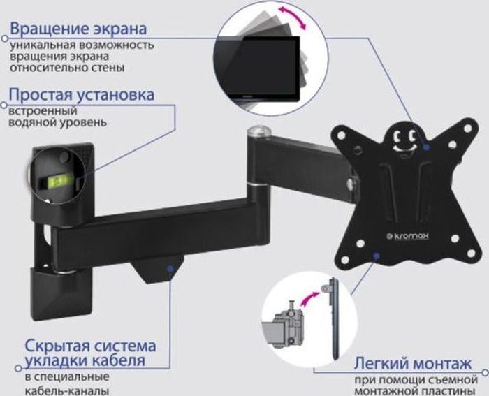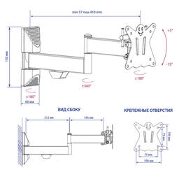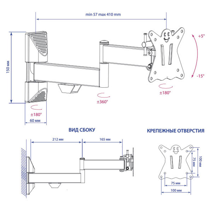 - Настенное крепление (VESA) 100x100 мм, 75x75 мм