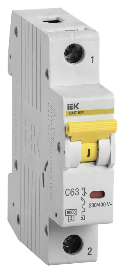 Выключатель автоматический IEK MVA31-1-063-C 63A тип C 6kA 1П 230В 1мод белый (упак.:1шт)