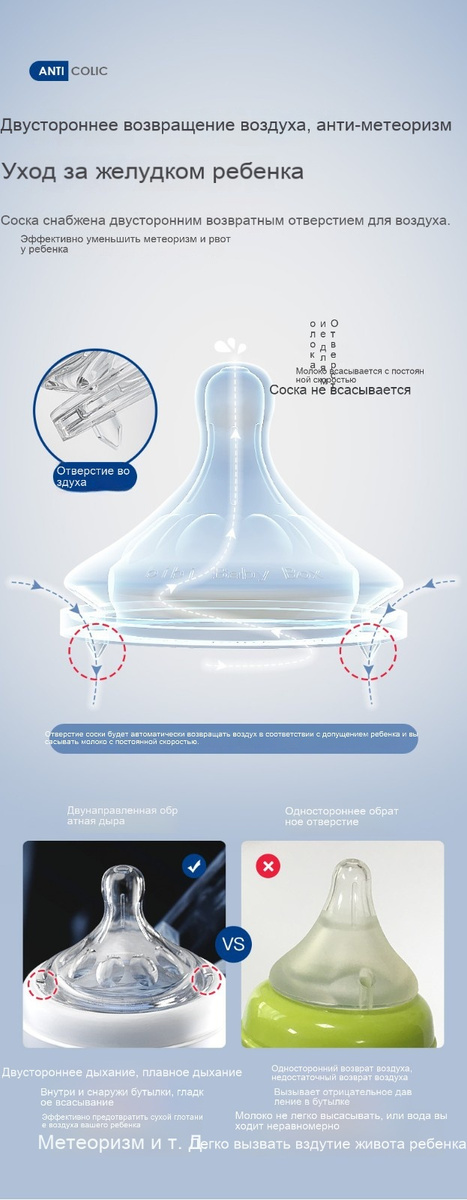 • Особенности бутылочек и сосок Не содержит Бисфенол A, Противоколиковая, Для новорожденных