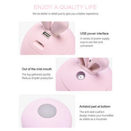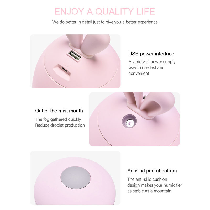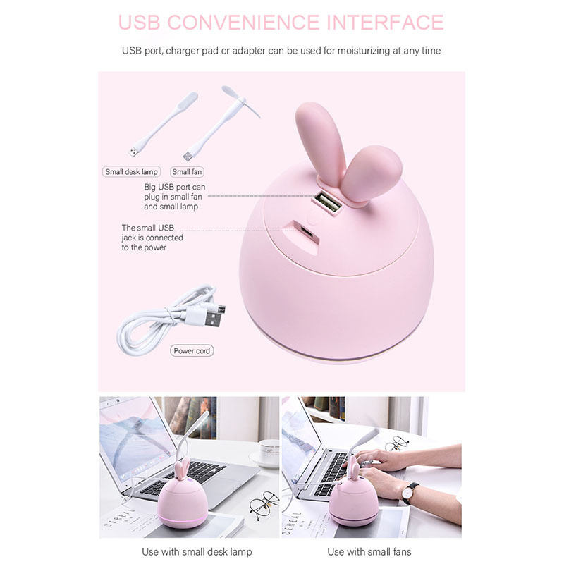 Увлажнитель воздуха Подключаемый USB-увлажнитель с лампой и вентилятором Cute Rabbit Desktop, белый