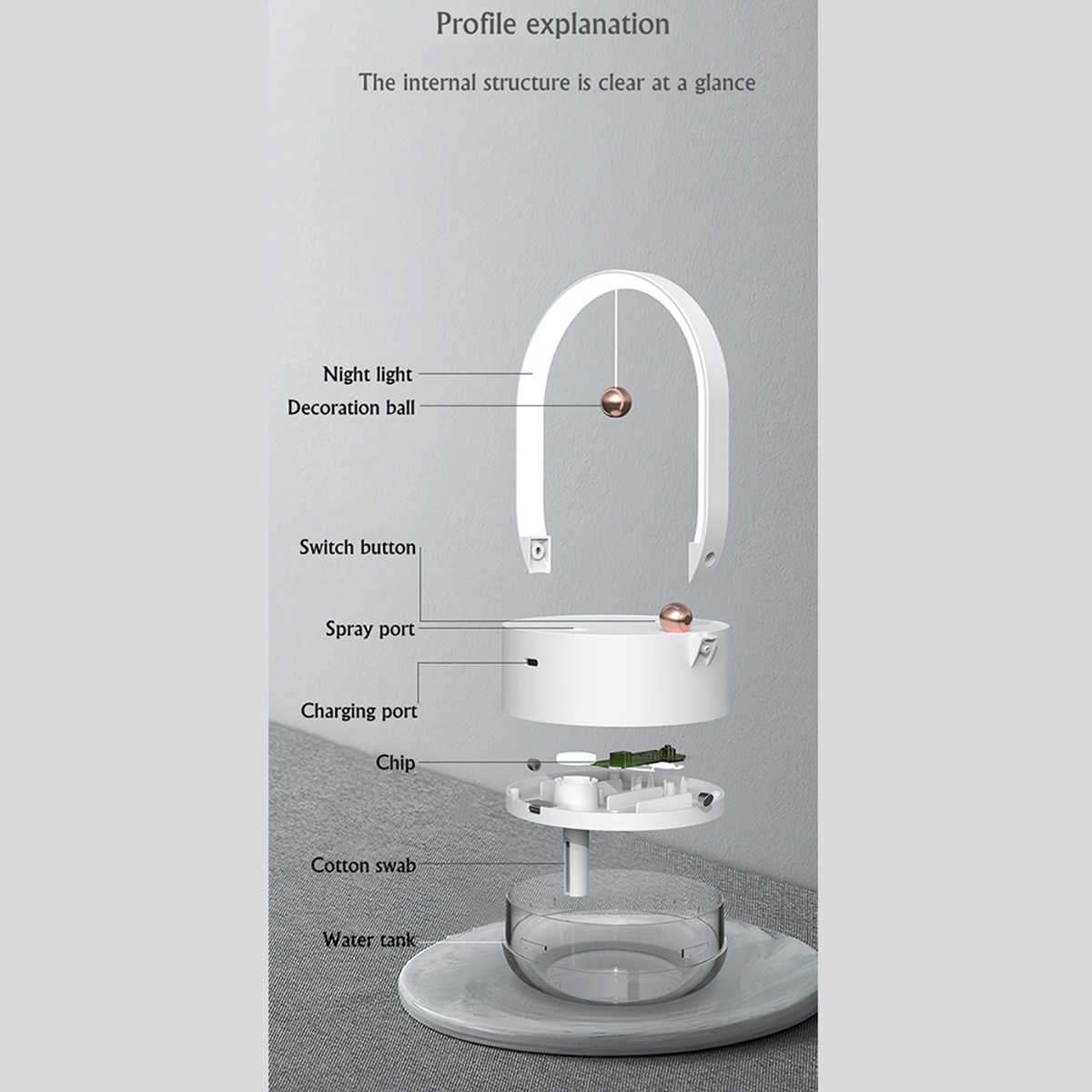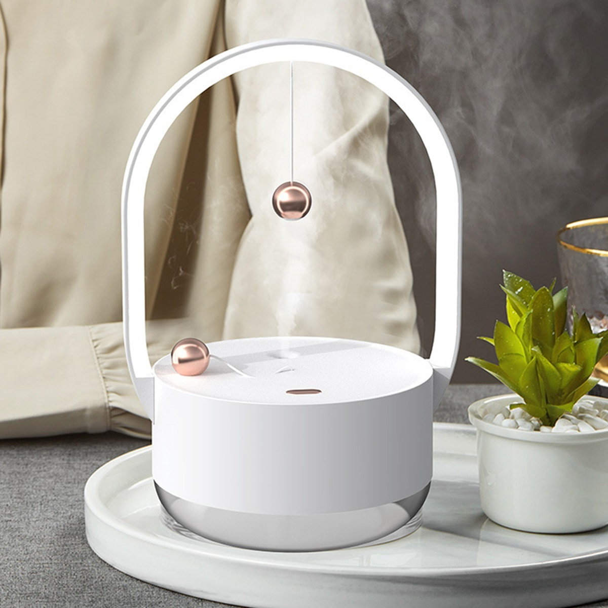 Увлажнитель воздуха со светодиодной подсветкой USB 1200MAh Humidificador, белый, белый
