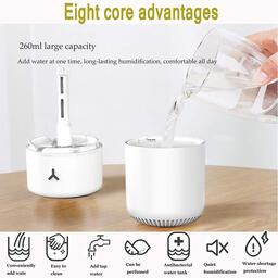 Увлажнитель воздуха Увлажнитель Cool Mist на 260 мл с ночником, 2 режима для домашнего розового цвета, белый