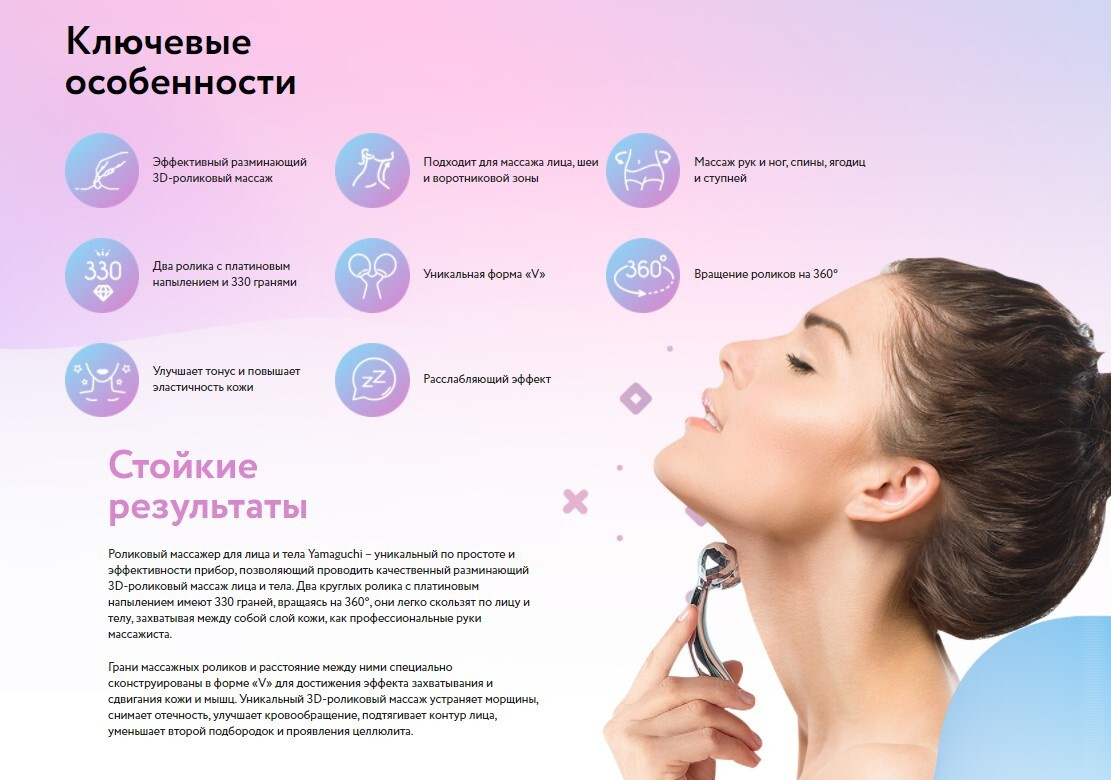 • Зоны массажа Лицо, Шея, Руки, Ноги, Ягодицы