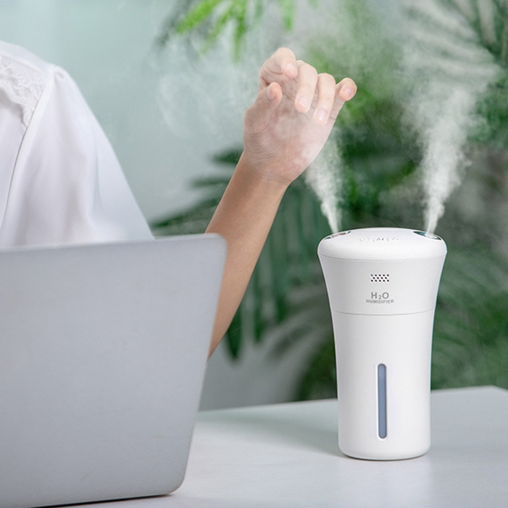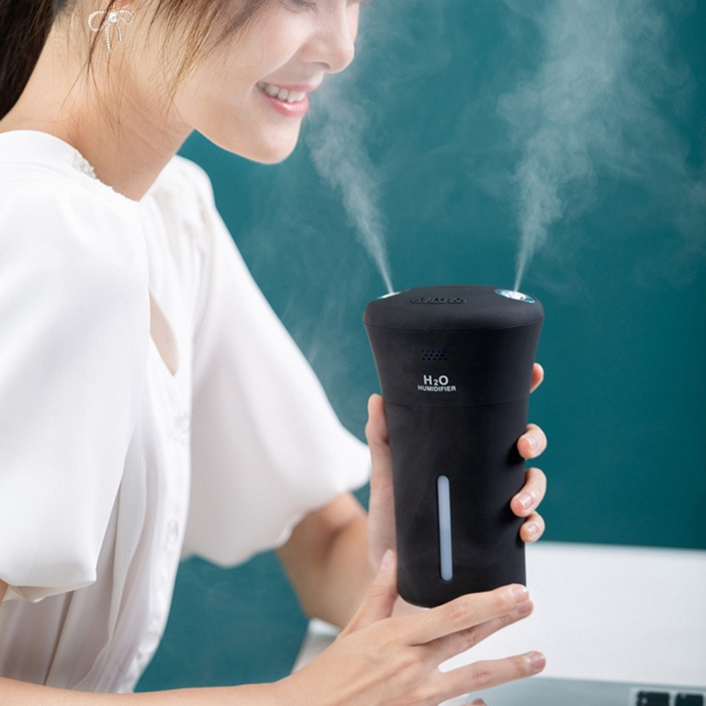 Увлажнитель воздуха Двойное сопло Большой спрей встроенный аккумуляторный аккумуляторный отрицательный ионный увлажнитель автомобильный портативный увлажнитель белый, белый