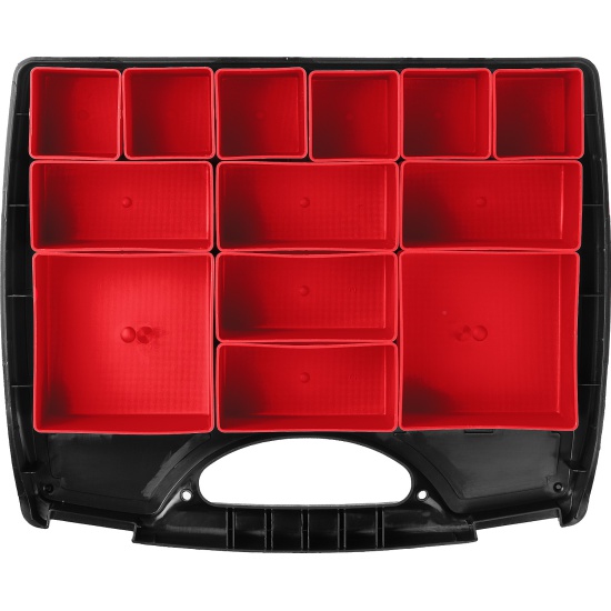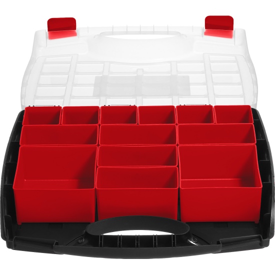 Органайзер ЗУБР 38034-13, применяется для хранения инструментов и принадлежностей. Съемные лотки органайзера позволяют организовать удобное хранение и переноску принадлежностей к инструментам.