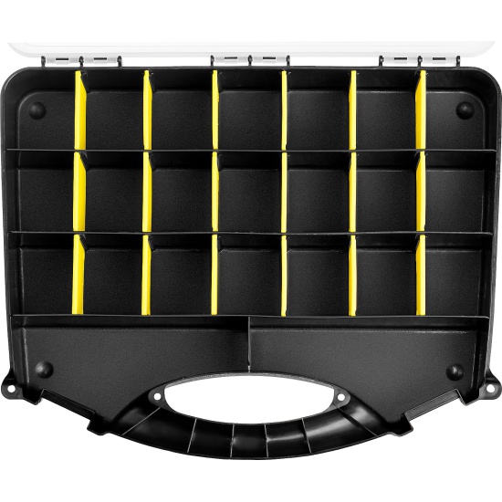 Органайзер STAYER 38038-18_z01, применяется для хранения инструментов и принадлежностей. Большое количество ячеек и возможность их регулирования по ширине позволяет организовать удобное хранение инструментов и принадлежностей.