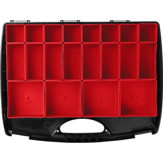 Органайзер ЗУБР 38034-20, применяется для хранения инструментов и принадлежностей. Съемные лотки органайзера позволяют организовать удобное хранение и переноску принадлежностей к инструментам.