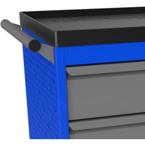 Тележки инструментальные серии PROFFI 950 - предназначены для использования на предприятиях любого профиля занятых ремонтом и изготовлением различной продукции. На боковые стенки инструментальной тележки нанесена перфорация размером 25х25 мм и диаметром отверстия 8 мм, что позволяет устанавливать на них навесной инструмент или крючки. Наибольшей популярностью тележки инструментальные пользуются в сфере авторемонта и обслуживания автомобилей .Тележки имеют выдвижные ящики на шариковых телескопических направляющих полного выдвижения с фиксацией в закрытом положении, предотвращающее открывание при передвижении тележки. Ящики имеют центральный замок, который позволяет ограничить доступ посторонних лиц к содержимому ящиков. Тележка инструментальная изготовлена из высококачественного металла ведущих Российских производителей, покрашена порошковой краской производства Германии, имеет итальянскую и турецкую фурнитуру. Тележки для инструмента оснащены двумя не поворотными колесами диаметром 100 мм, одним поворотным и одним поворотным со стопором, которое фиксирует тележку и предотвращает непроизвольное скатывание.