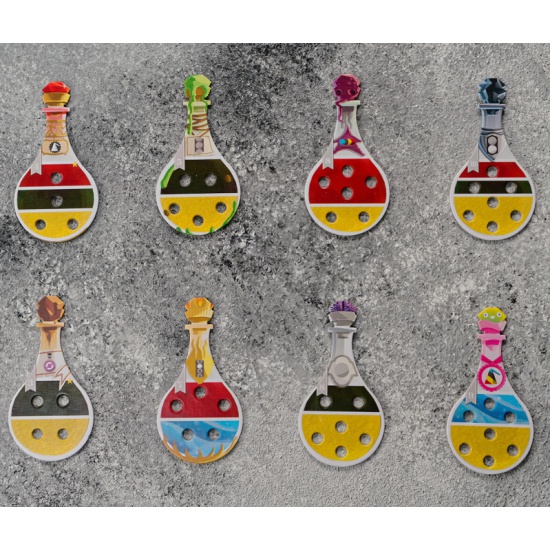 Загребаешь себе побольше шариков и укладываешь их в специальные колбочки — «зелья». Когда зелье сварено целиком, ты получаешь право на действие против оппонентов: взять несколько шариков, забрать шарик у соперника и т. д.