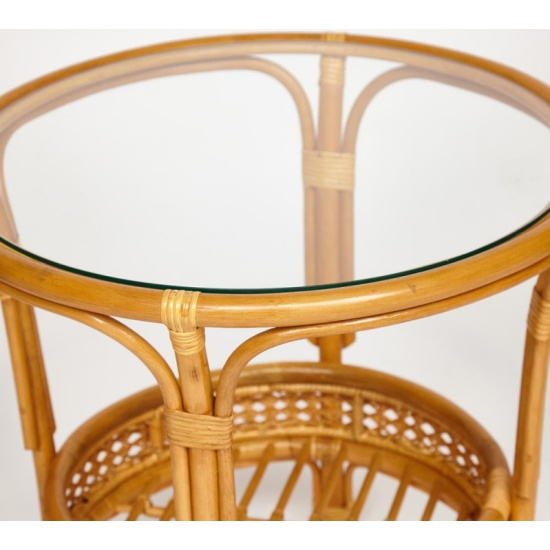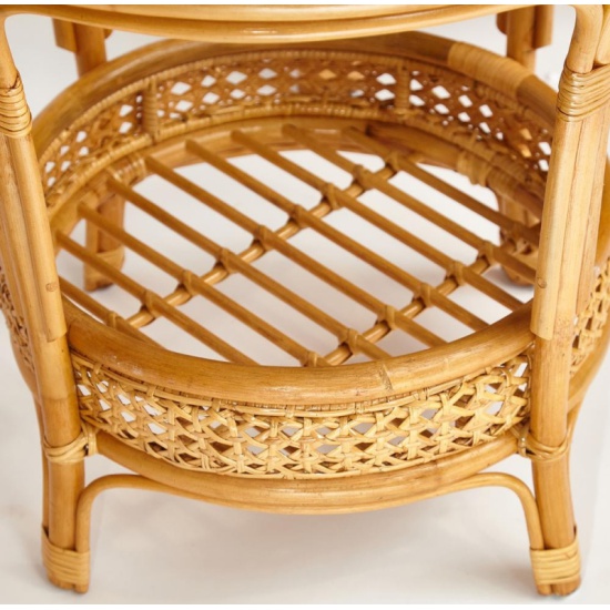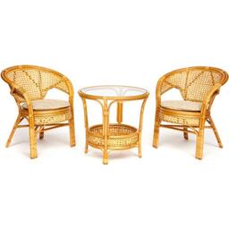 Террасный комплект TETCHAIR "PELANGI" (стол со стеклом + 2 кресла), ротанг, кресло 65х65х77см, стол диаметр 64х61см, Honey (мед) id13345