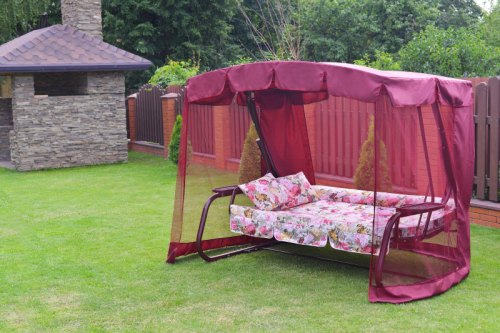 Качели садовые 3-х местные Турин-2 арт.с914Габариты изделия (ШхДхВ) : 2365х1380х1815Цвет каркаса : бордовыйМатериал каркаса : стальТруба : Ø51Цвет чехла мягкого элемента/матраса : разноцветныйТип основания сиденья : оцинкованная сеткаДопустимая нагрузка : 280Регулировка спинки : ДаПодушки : ДаМоскитная сетка : ДаПодголовник : ДаМеханизм наклона : звеньями цепи на требуемый угол наклона, с фиксацией в горизонтальном положении
