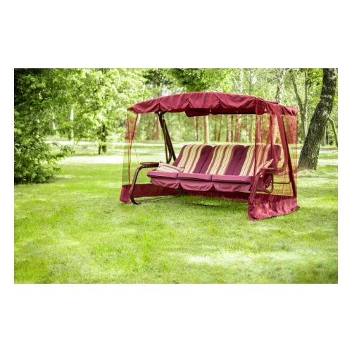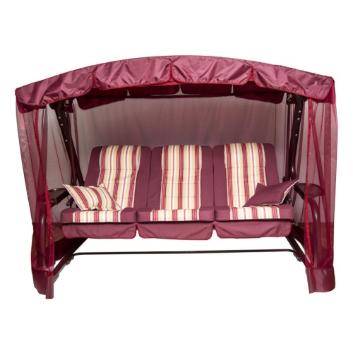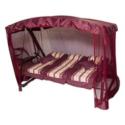 Качели садовые МЕБЕЛЬТОРГ 3-х местные Палермо Премиум(каркас бордовый, м/э бордовый,бежевый рис.полоска)2 уп. galс832