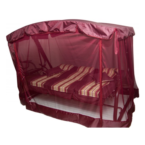 Габариты изделия (ШхДхВ) : 2665х1440х1860Цвет каркаса : бордовыйМатериал каркаса : стальТруба : Ø60Цвет чехла мягкого элемента/матраса : бордовый,бежевыйТип основания сиденья : оцинкованная сеткаДопустимая нагрузка : 320Регулировка спинки : ДаПодушки : ДаМоскитная сетка : ДаПодголовник : ДаМеханизм наклона : с помощью ручки трансформации (фиксаторы, расположенные на спинке, защелкиваются на дуге)