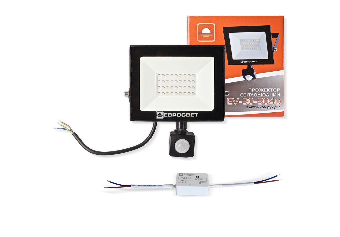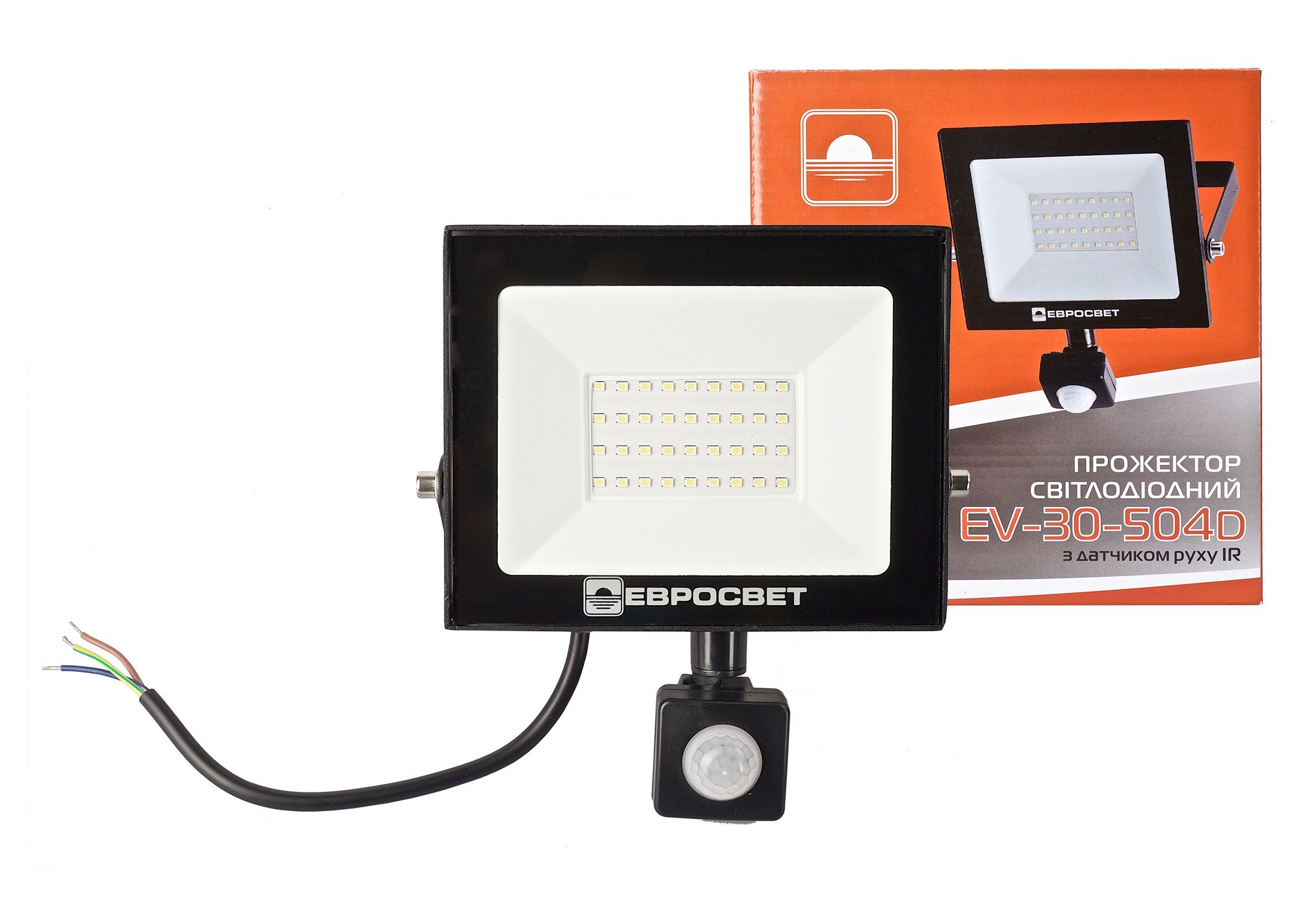 Прожектор светодиодный ЕВРОСВЕТ 30Вт с датчиком движения EV-30-504D 6400К 2100Лм Бренд: Евросвет Страна бренда: Украина