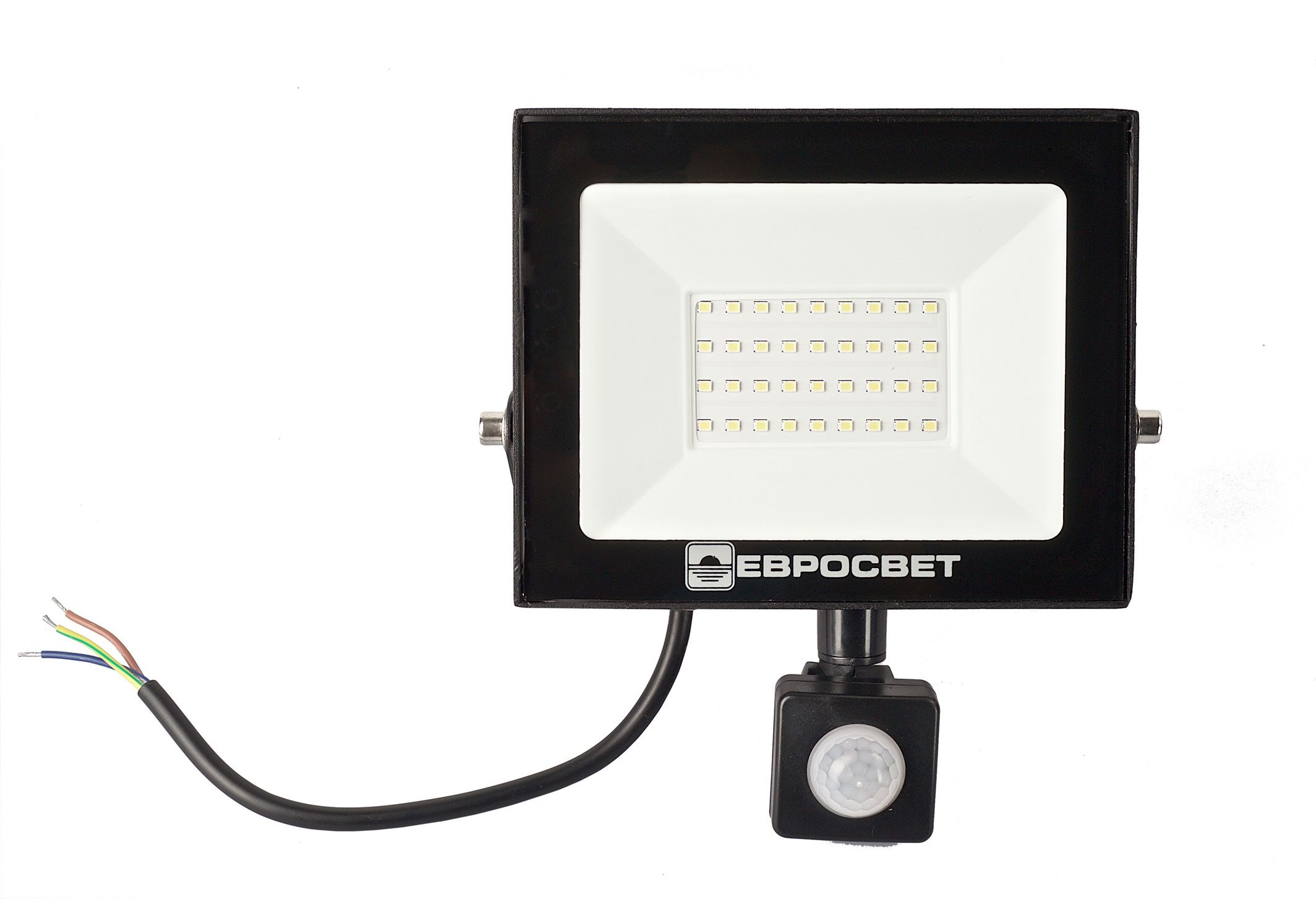 Прожектор светодиодный ЕВРОСВЕТ 30Вт с датчиком движения EV-30-504D 6400К 2100Лм