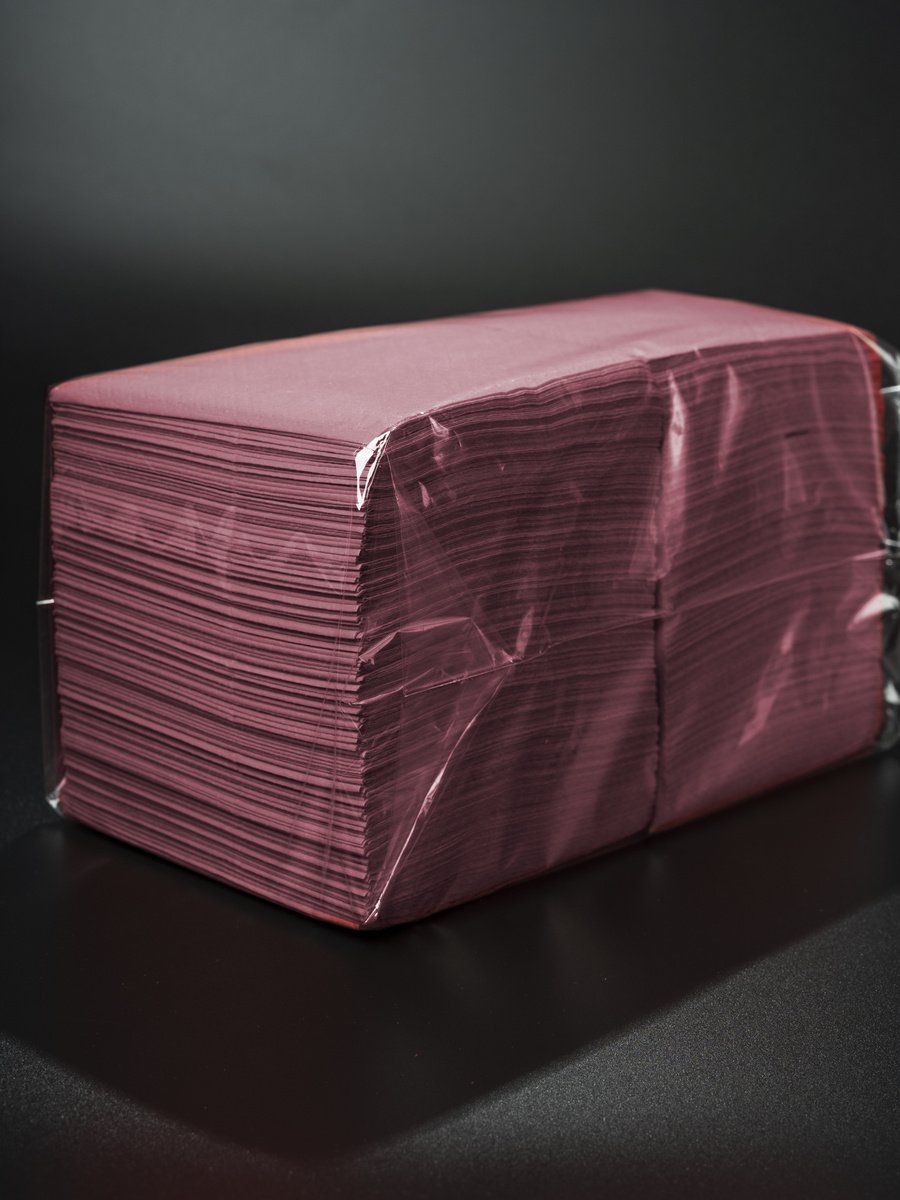 Салфетки бумажные PAKSTAR 24х24 бордовые, однослойные, 400 шт, 100% целлюлоза