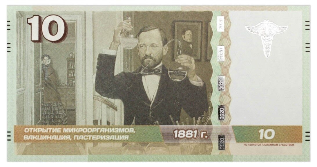 Банкнота 10 рублей 2020 года Вакцинация Пастеризация Луи Пастер Россия