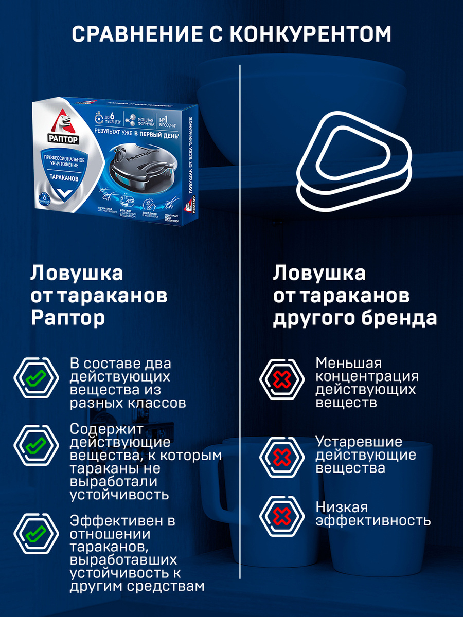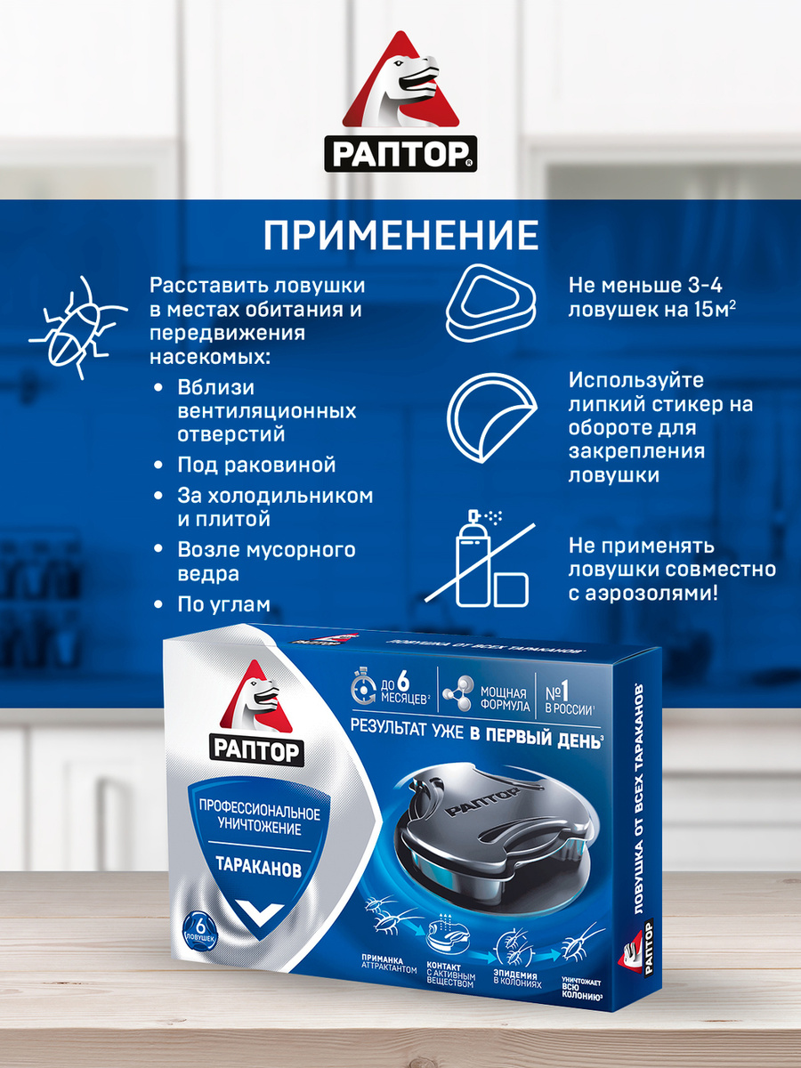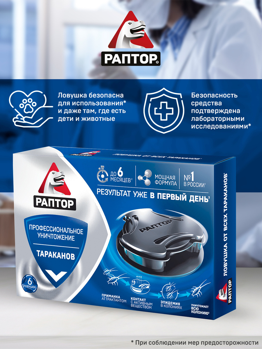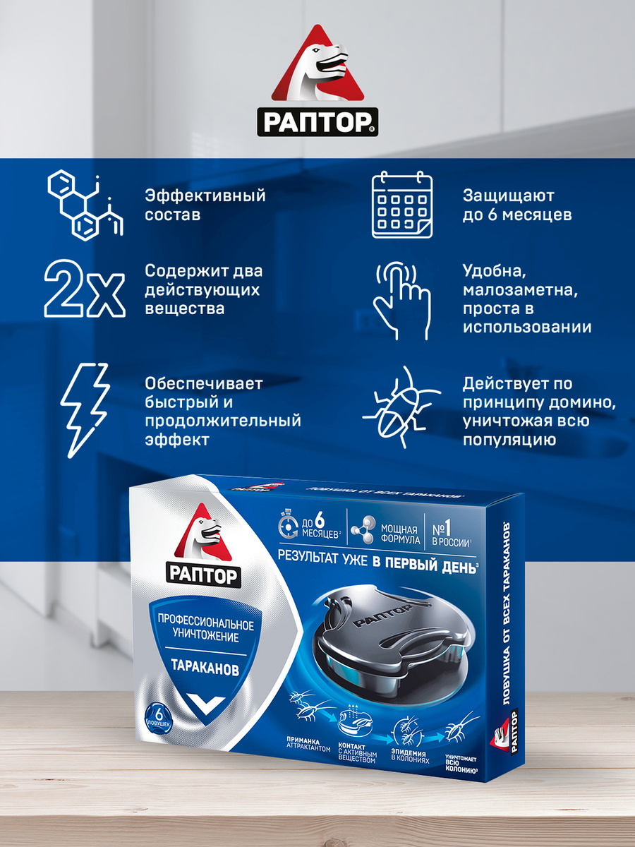 Средство от тараканов - ловушка от тараканов Раптор, 6 штук.