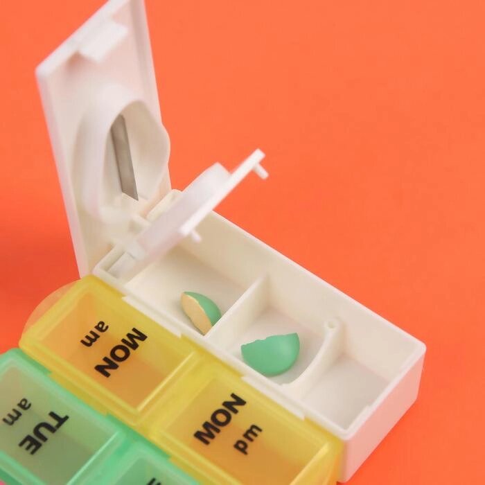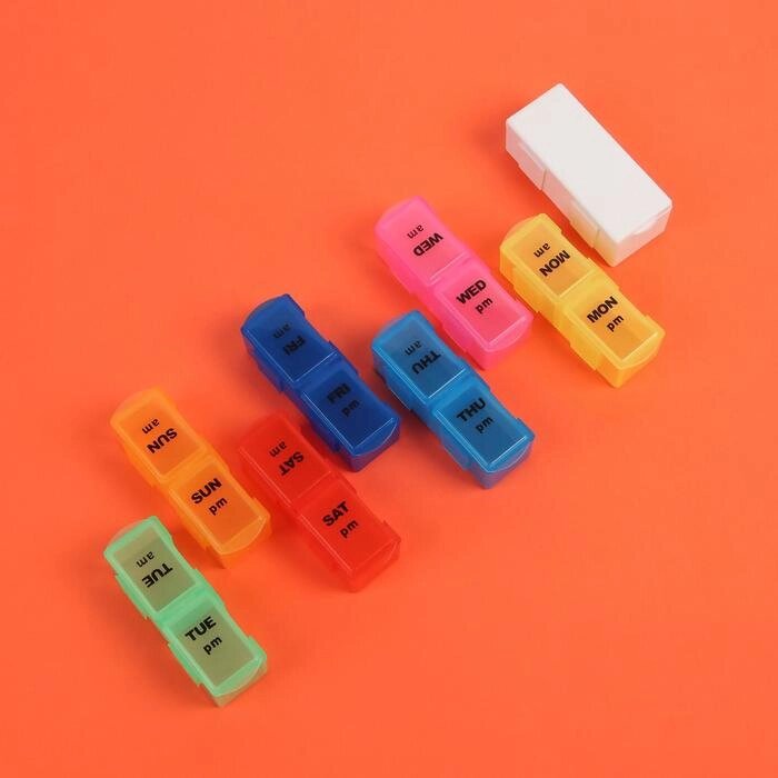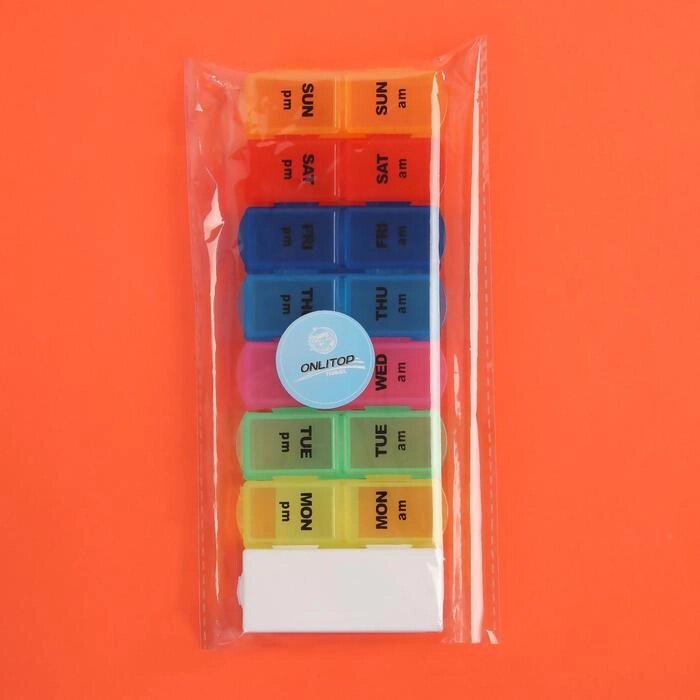 Таблетница-органайзер «Неделька», с делителем, утро/вечер, 7 контейнеров по 2 секции, цвет МИКС