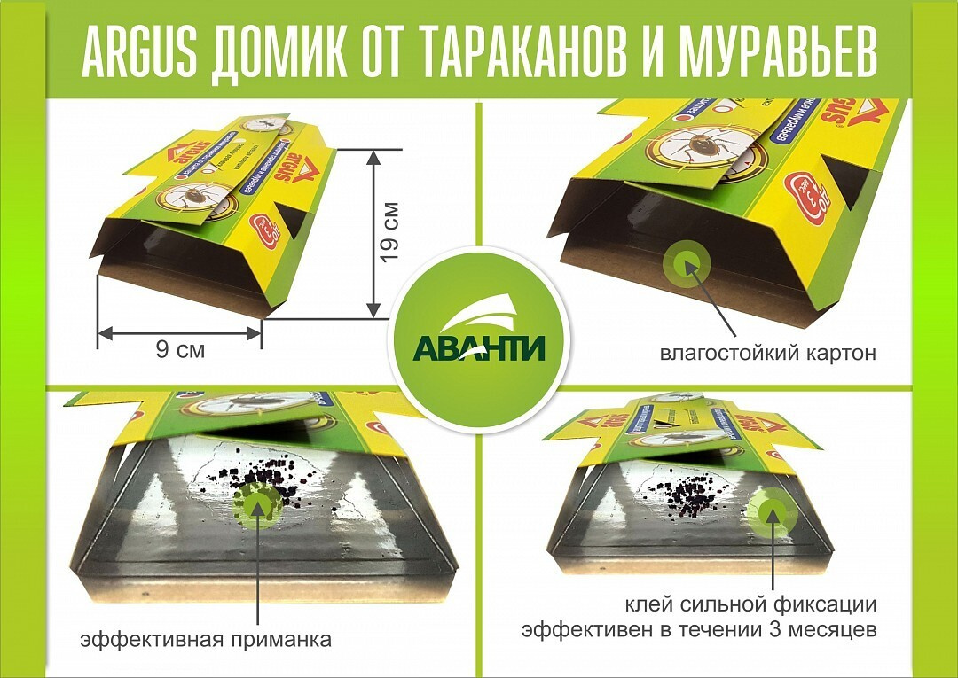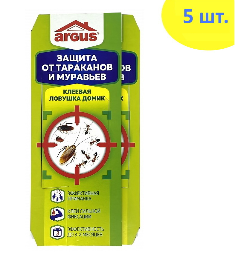 Аргус Клеевая ловушка для тараканов Домик, 5 штук