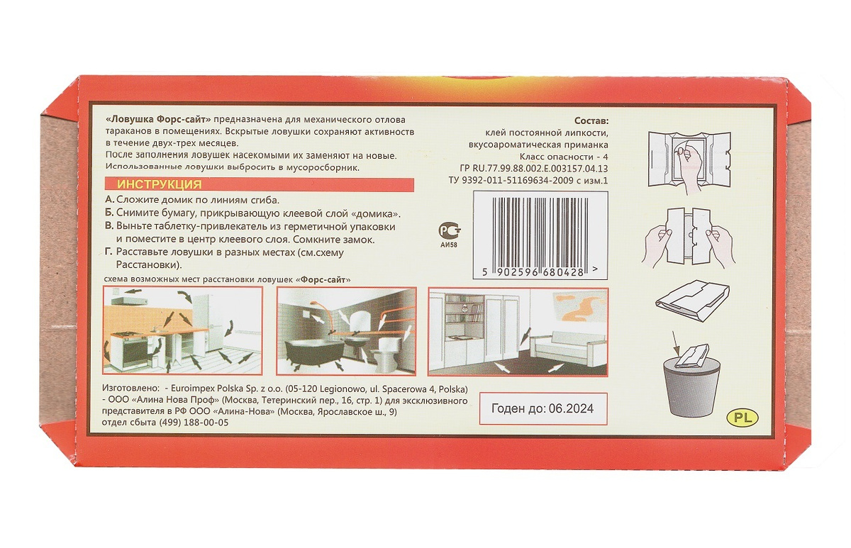 Форсайт (Форссайт) клеевая ловушка с приманкой от тараканов / Комплект из 5 ловушек