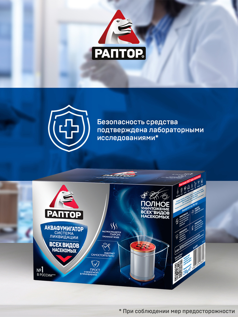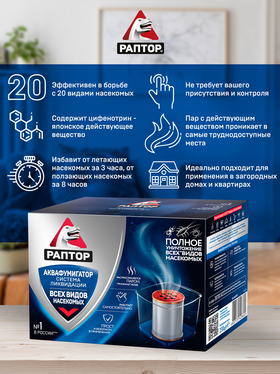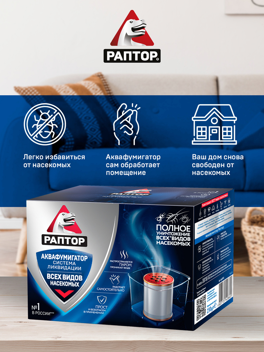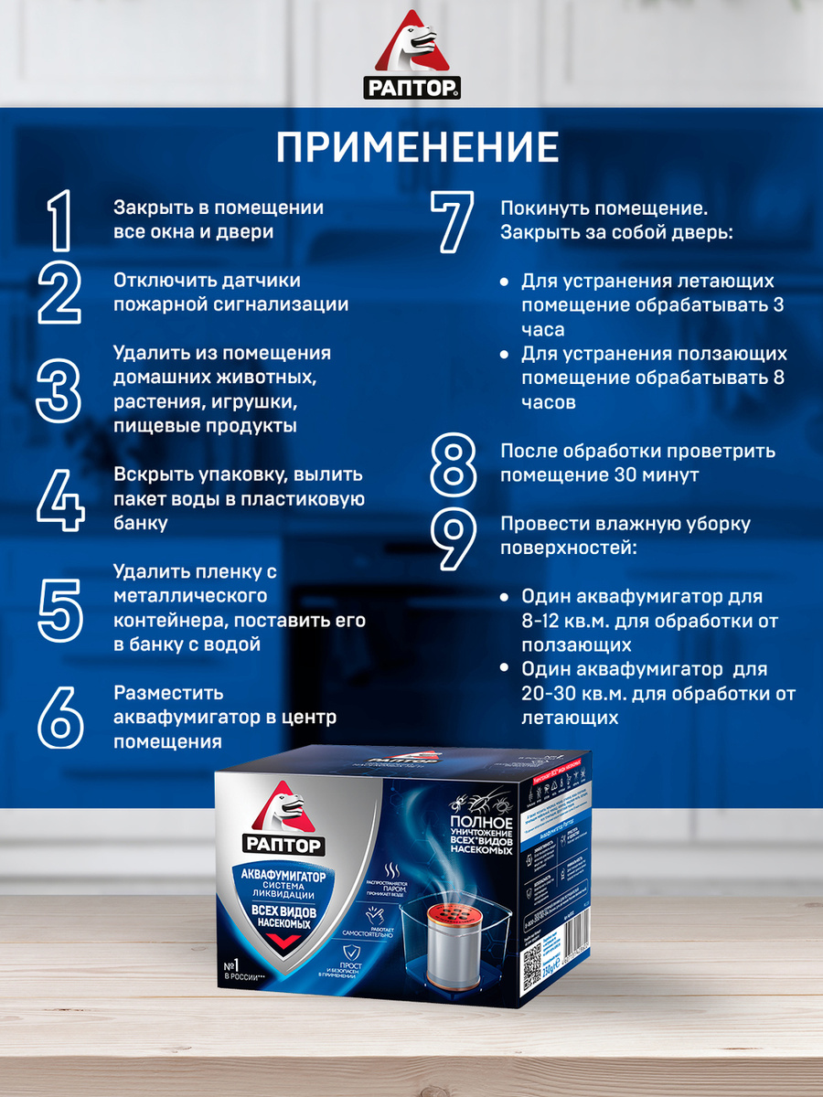 Аквафумигатор Раптор от комаров, от мух, от мошек, от муравьев, от ос, от тараканов, от блох, от пауков, от москитов, от мокриц, от моли. Уцененный товар