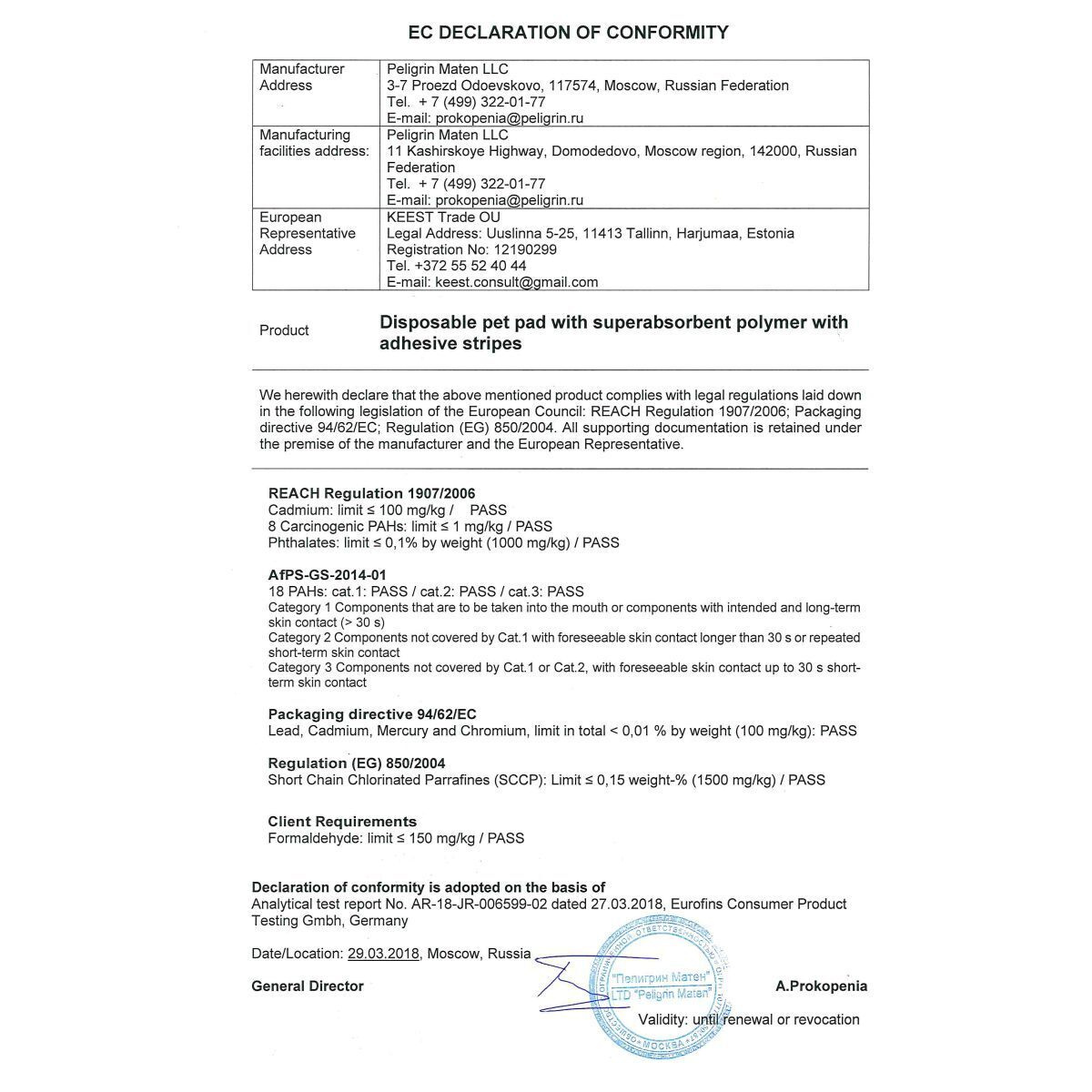 • Тип Подстилка впитывающая