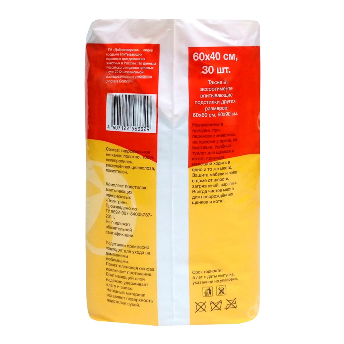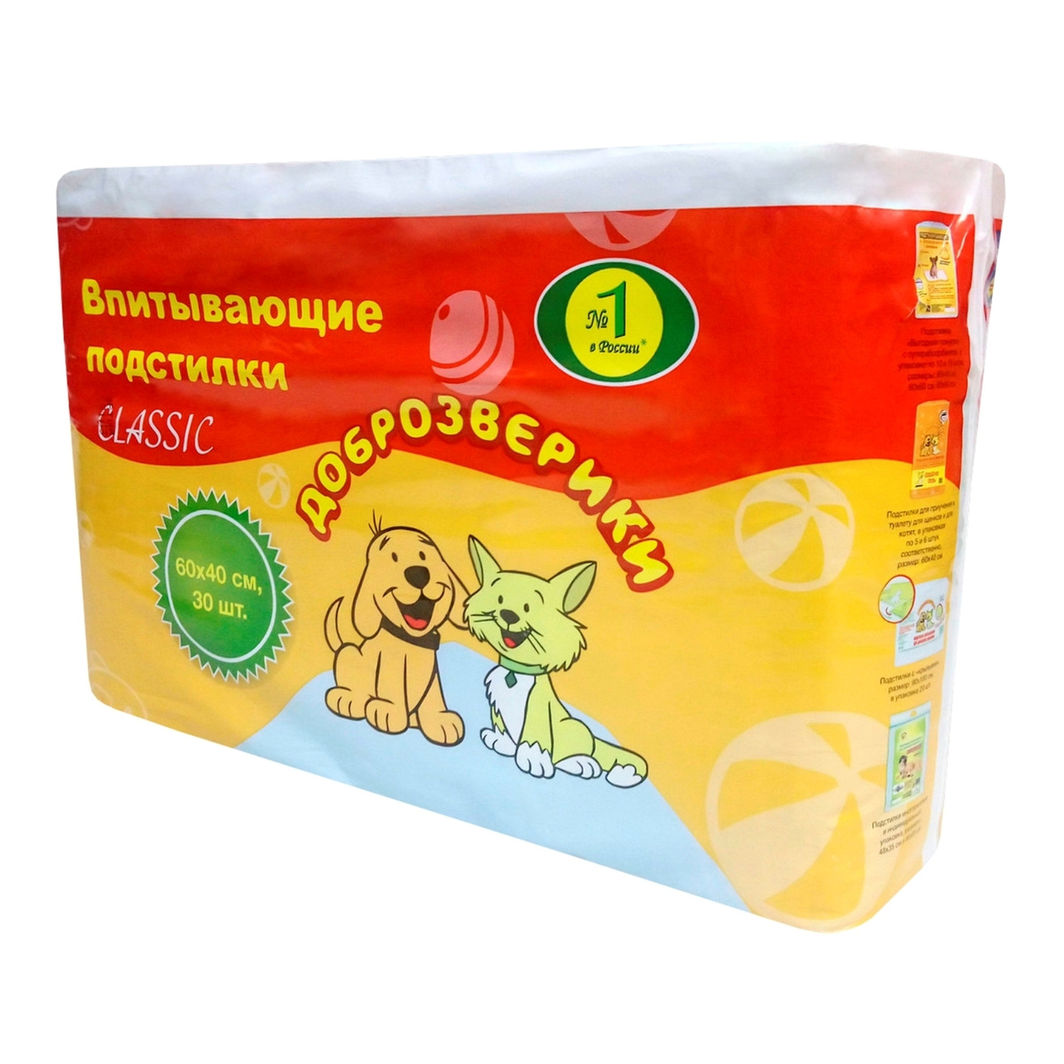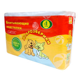 Пеленки впитывающие одноразовые для животных Доброзверики 60х40 см. 30 шт. Classic