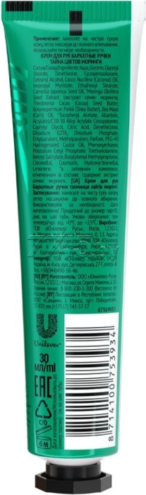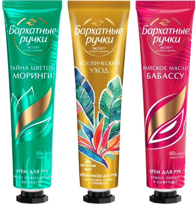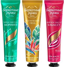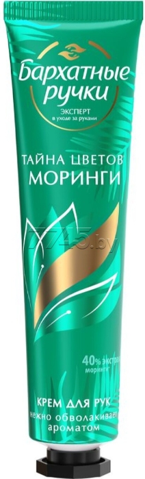 Крем для рук БАРХАТНЫЕ РУЧКИ Тайна цветов моринги 30 мл (9151048315) содержит 40% экстракта моринги активном комплексе. Это дерево растет различных частях Африки и Азии, в Латинской Америке, Индонезии и издавна известно своими полезными свойствами. Крем увлажняет кожу рук и делает ее более гладкой. Нежный цветочный аромат обволакивает и превращает уход за руками в истинное удовольствие.