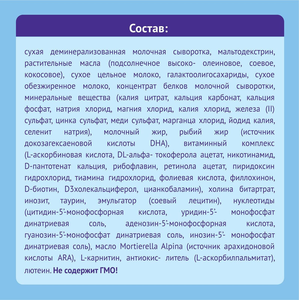 • Не содержит ГМО, Пальмовое масло